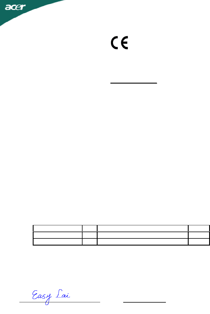 Contact Person: Mr. Easy Lai, E-mail: easy_lai@acer.com.tw