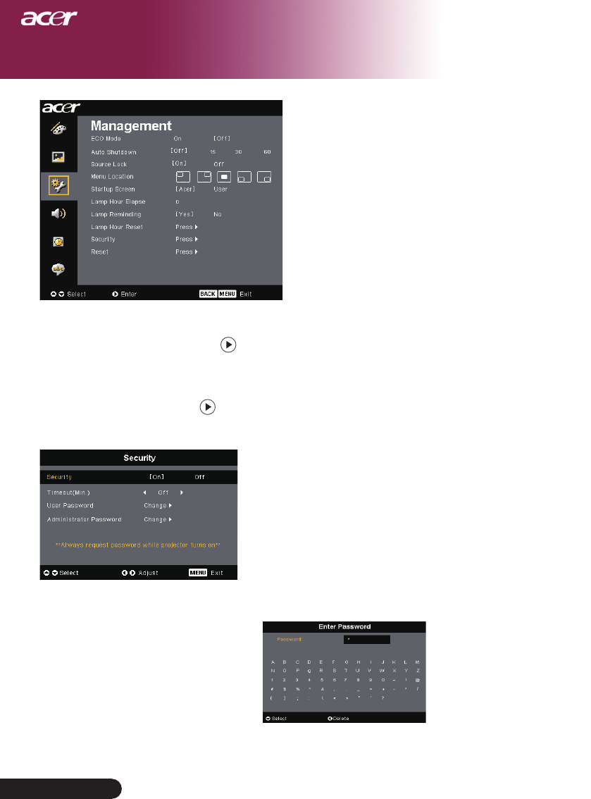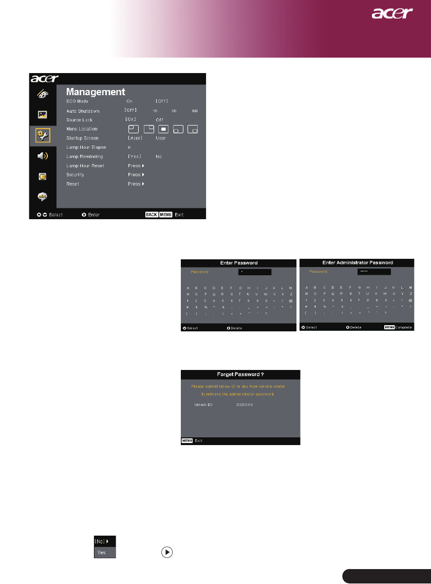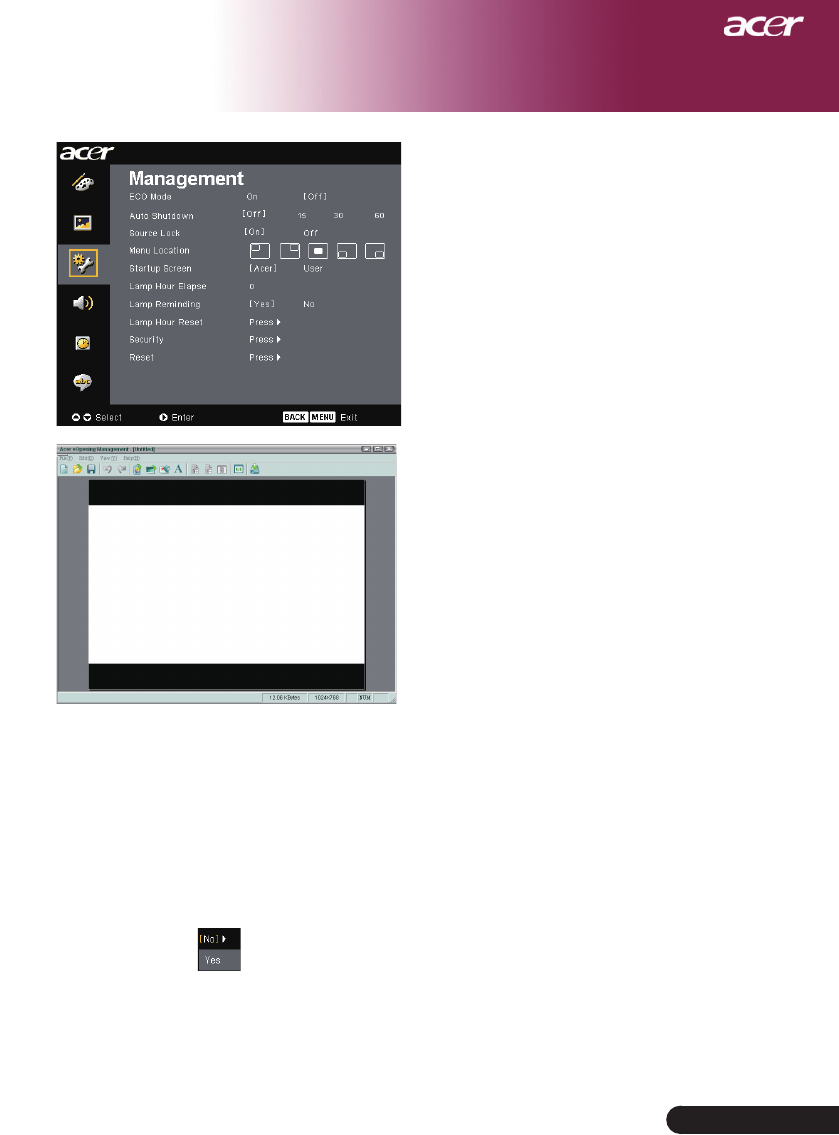 Screen Display “Management” menu after replacing