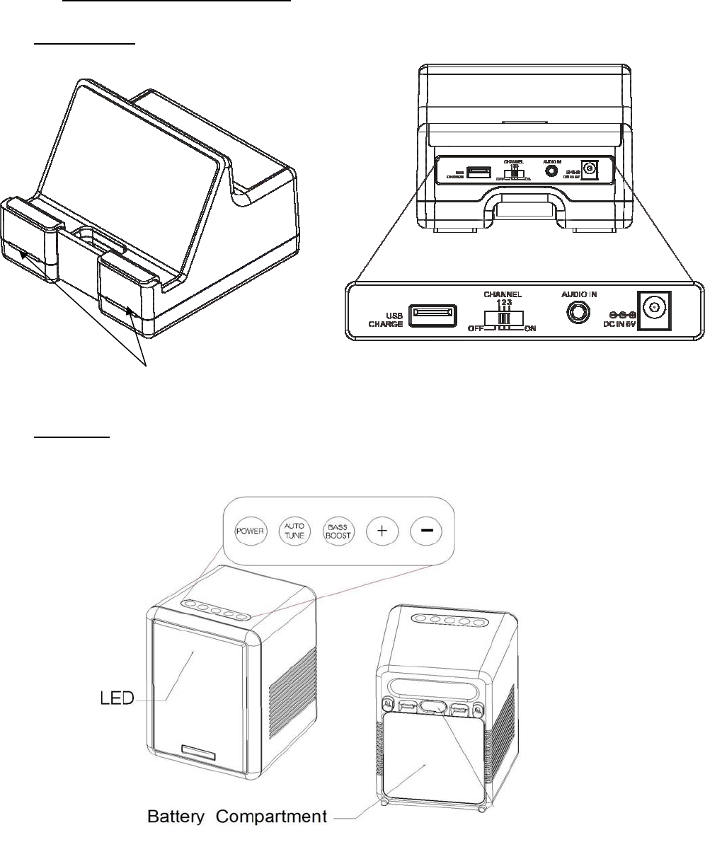 1. If there is no audio input signal to transmitter in 4 minutes, transmitter will go to standby mode and LED will