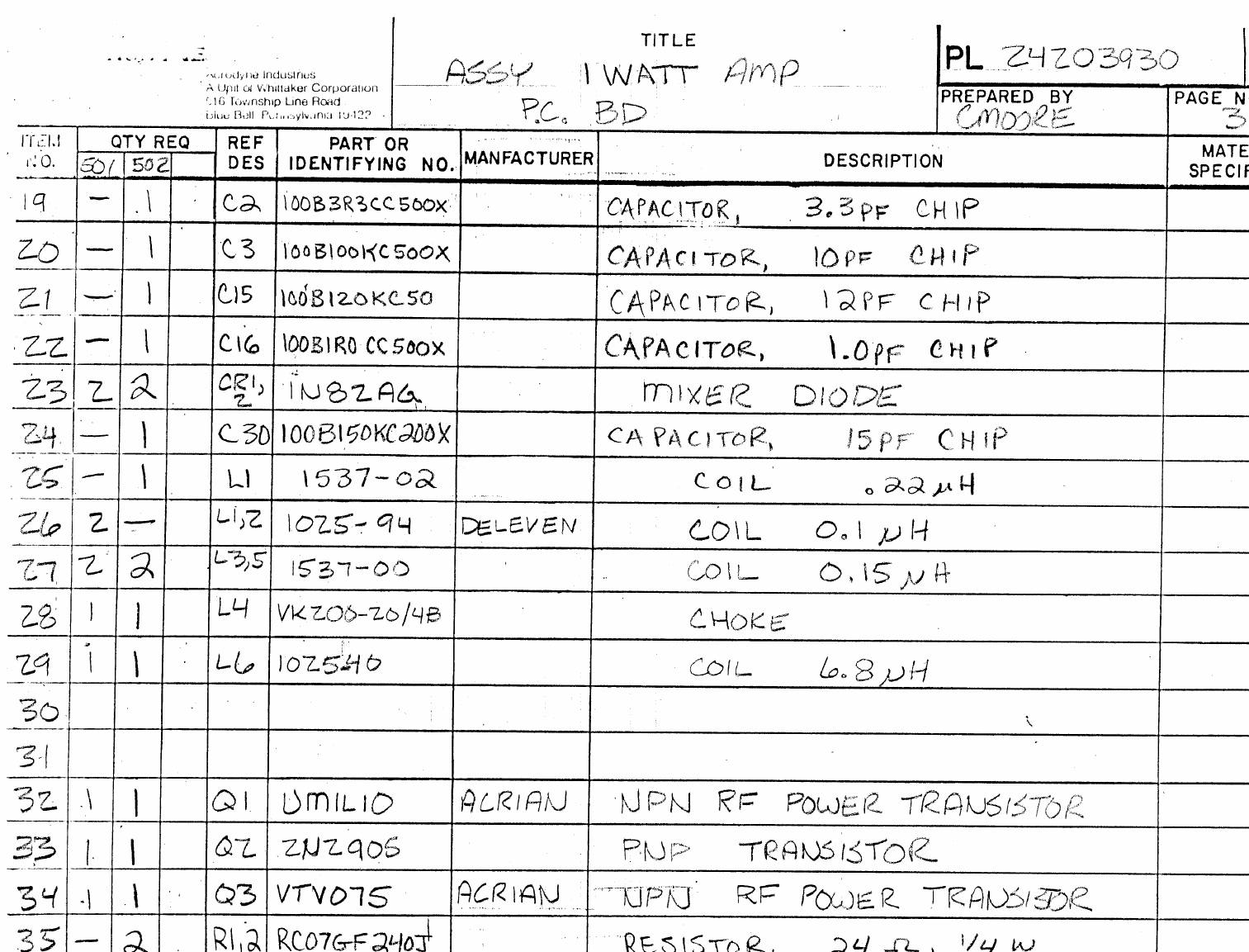 109 1 22311681-04 DETAIL, VHF AMP COAX