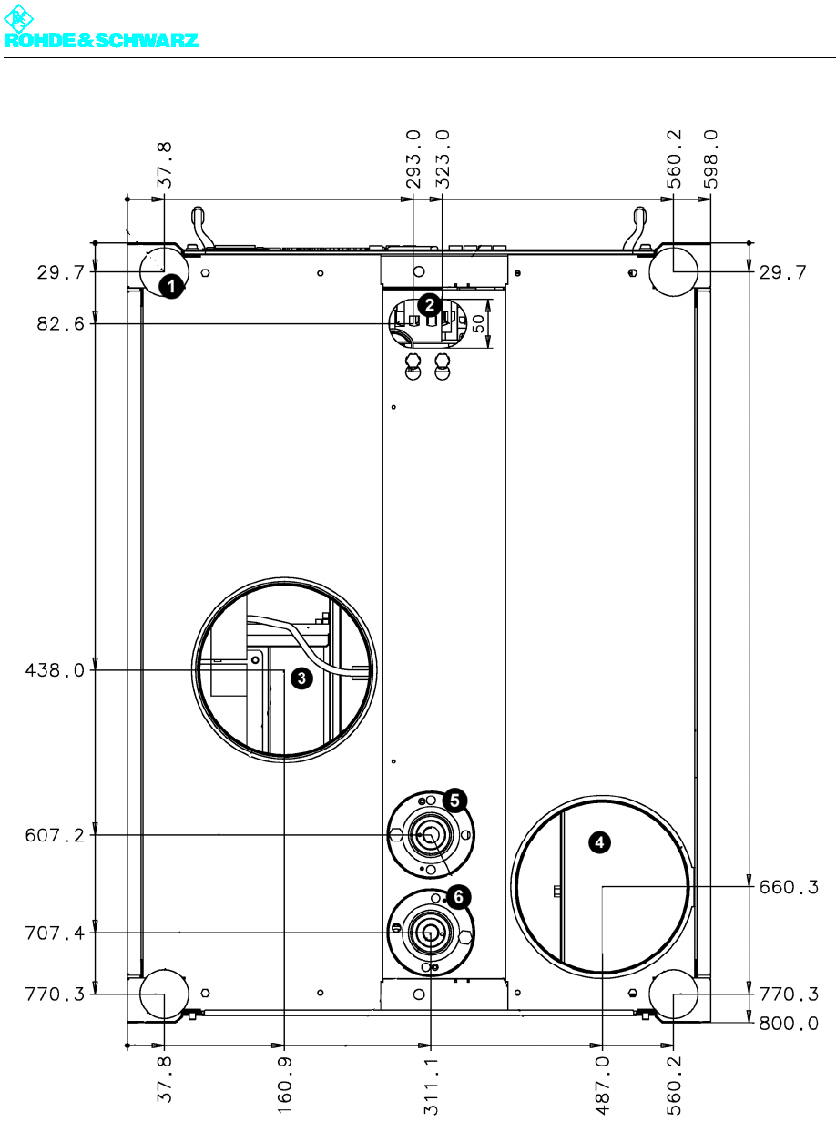 The following drawings show the transmitter roof and floor dimensioning for properly con-