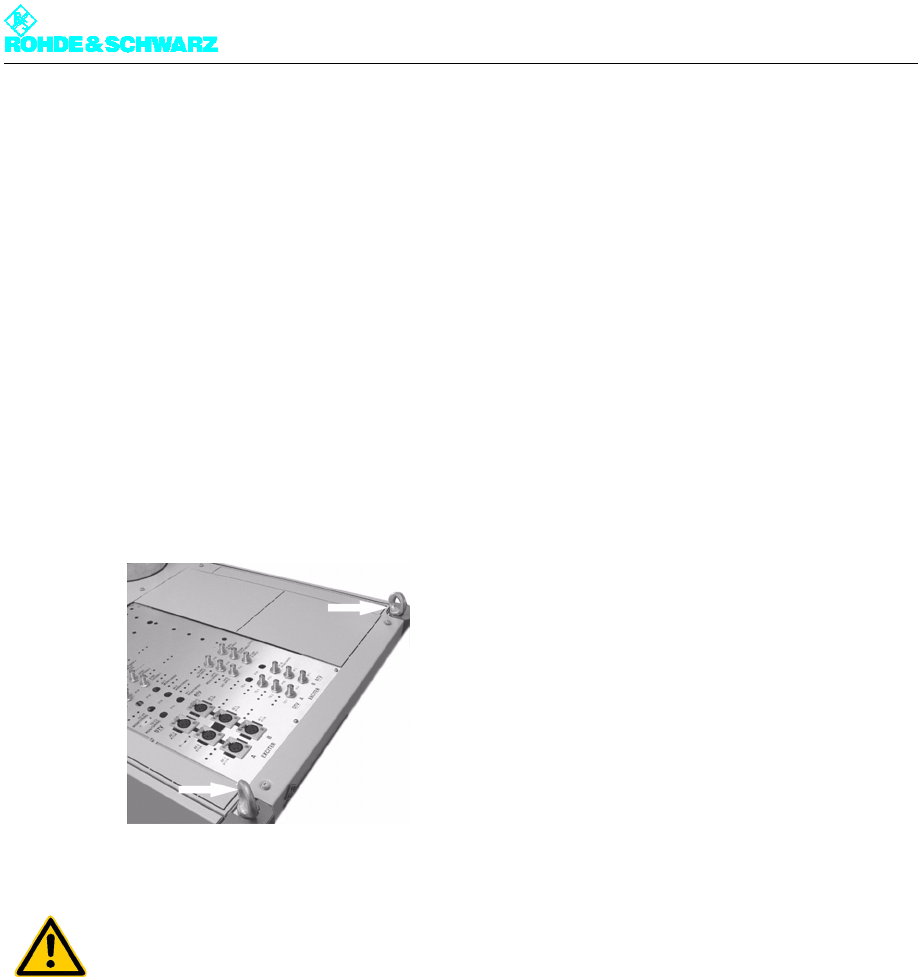 The transmitter rack can be set up using lift equipment (crane). The roof of the rack has lift