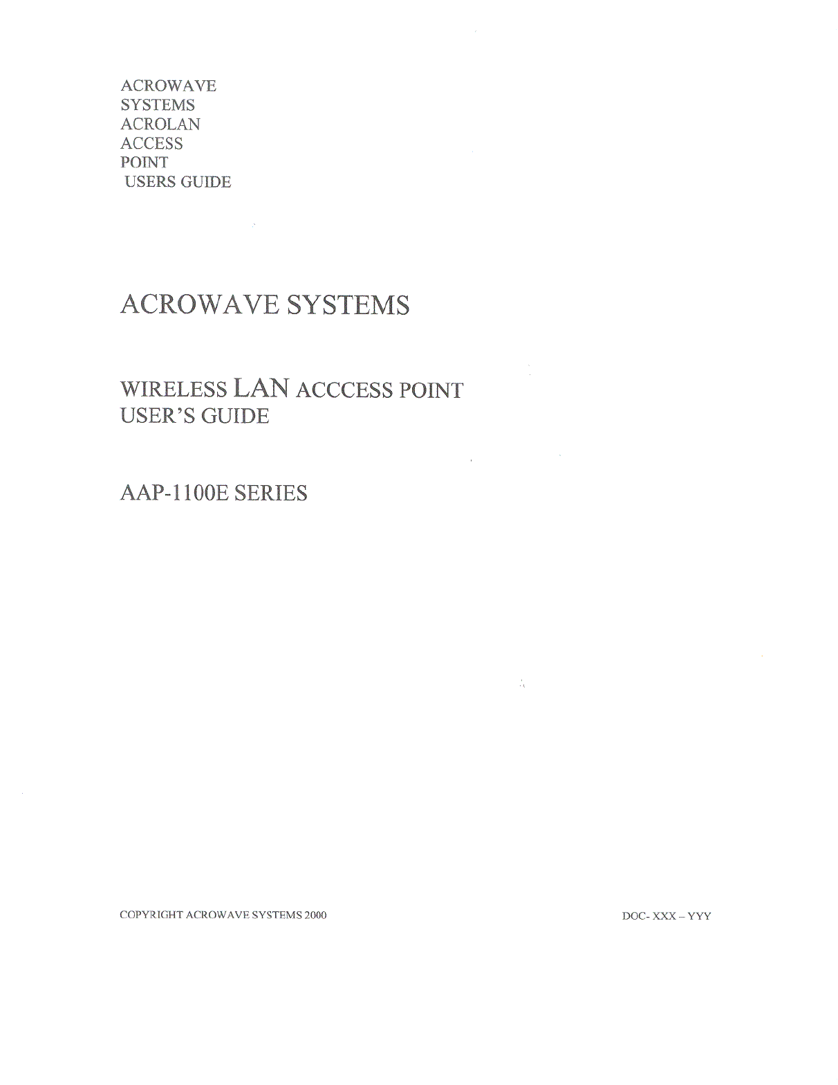 Acrowave Systems AAP-1100E 2.4GHz Wireless LAN User Manual users manual 1