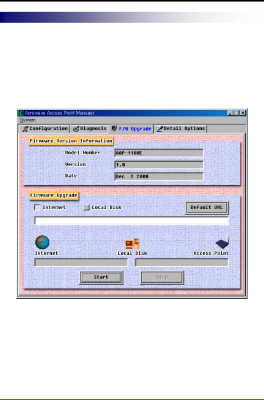 In order to upgrade Access Point firmware via Internet, click the Internet selection