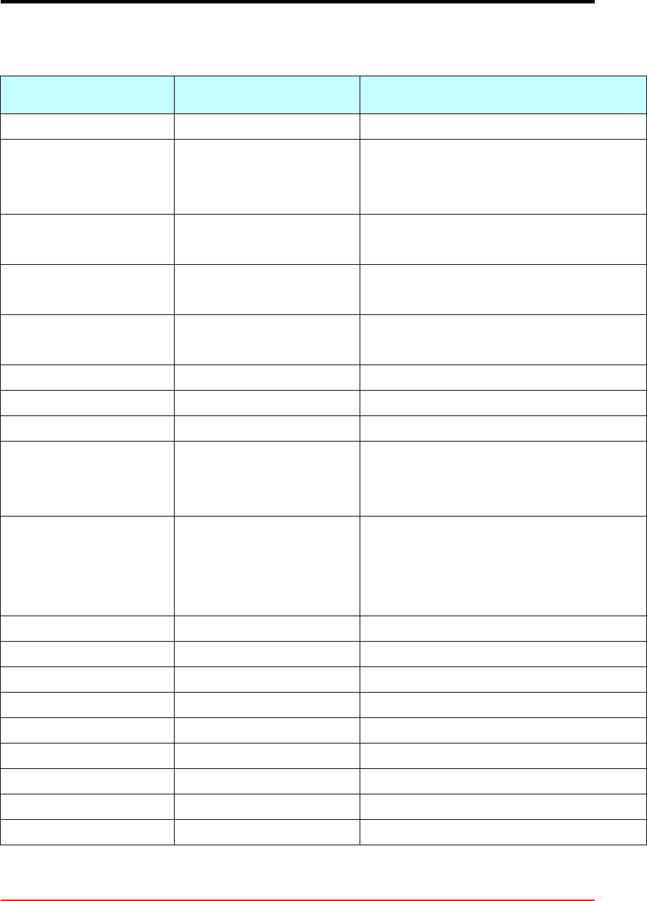 shown in the table below, as appropriate for the various areas or regulatory agencies.