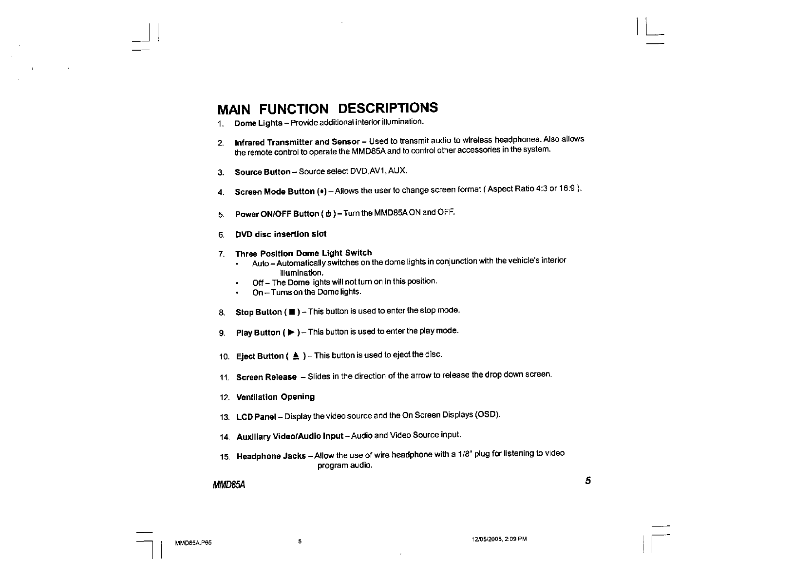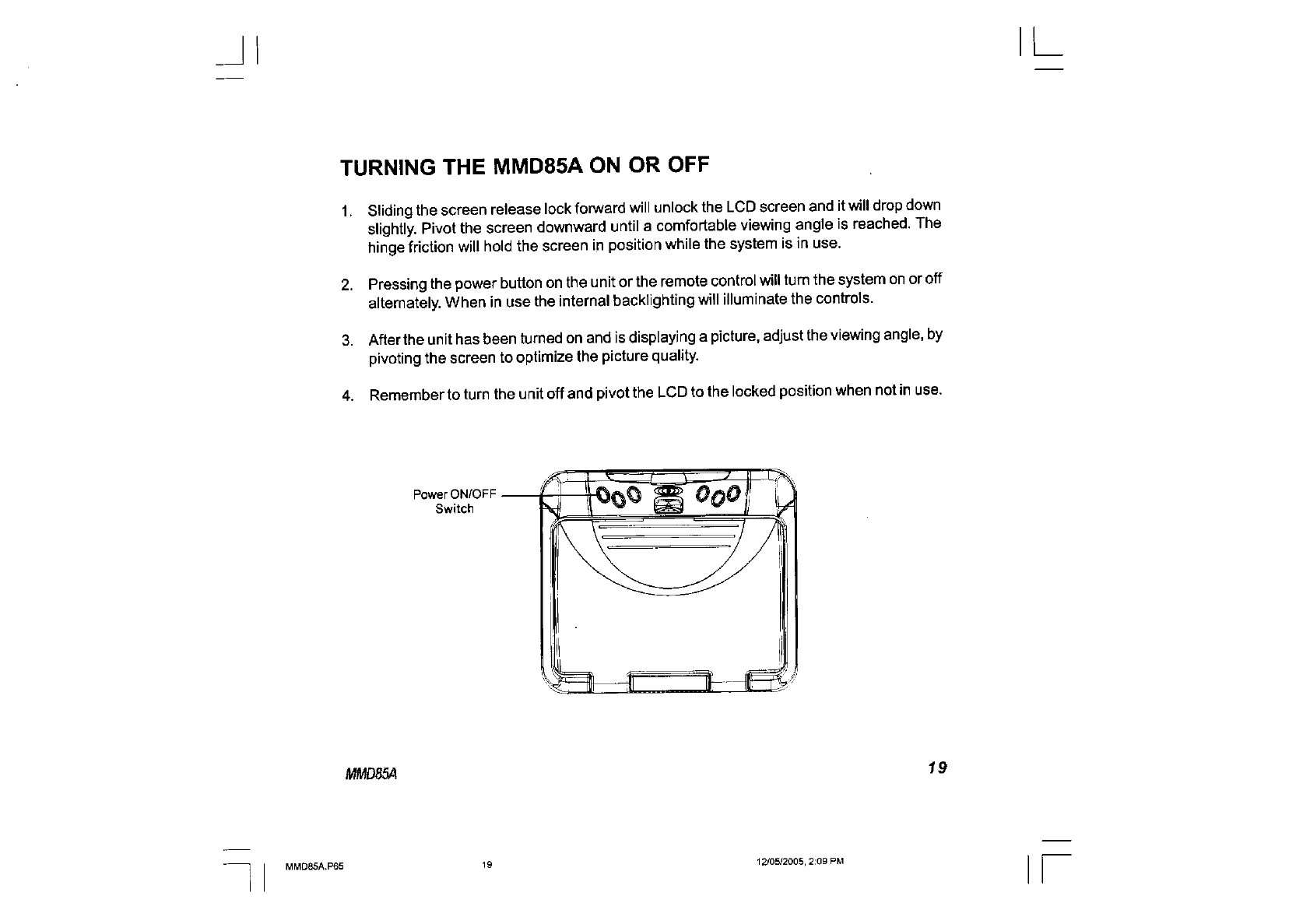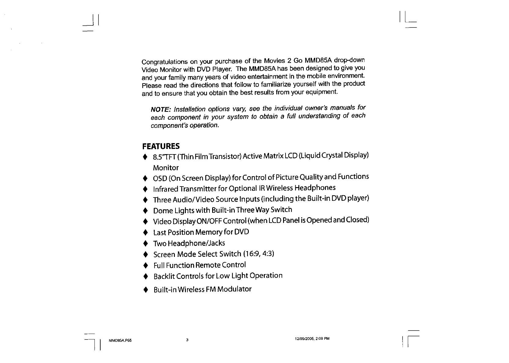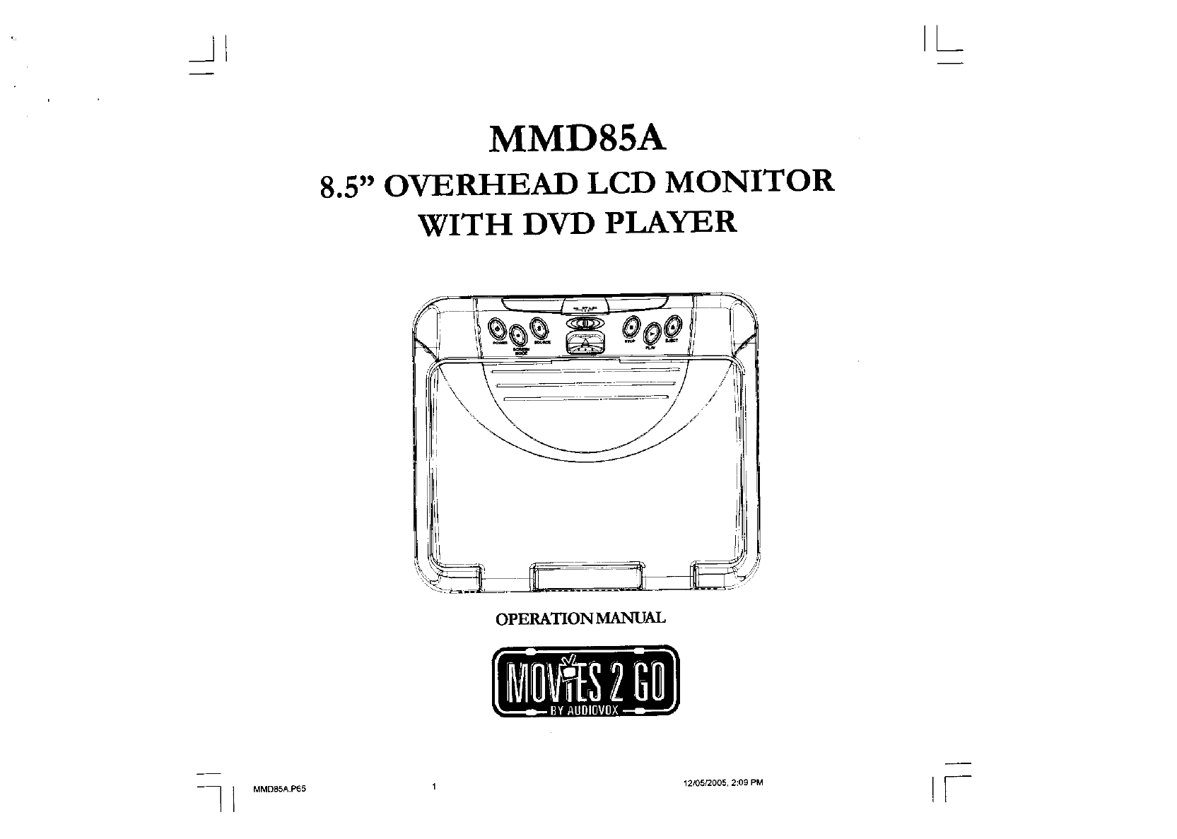 Action Electronics 9R3MMD85A 8.5" Overhead LCD TV/Monitor w/ DVD Player User Manual