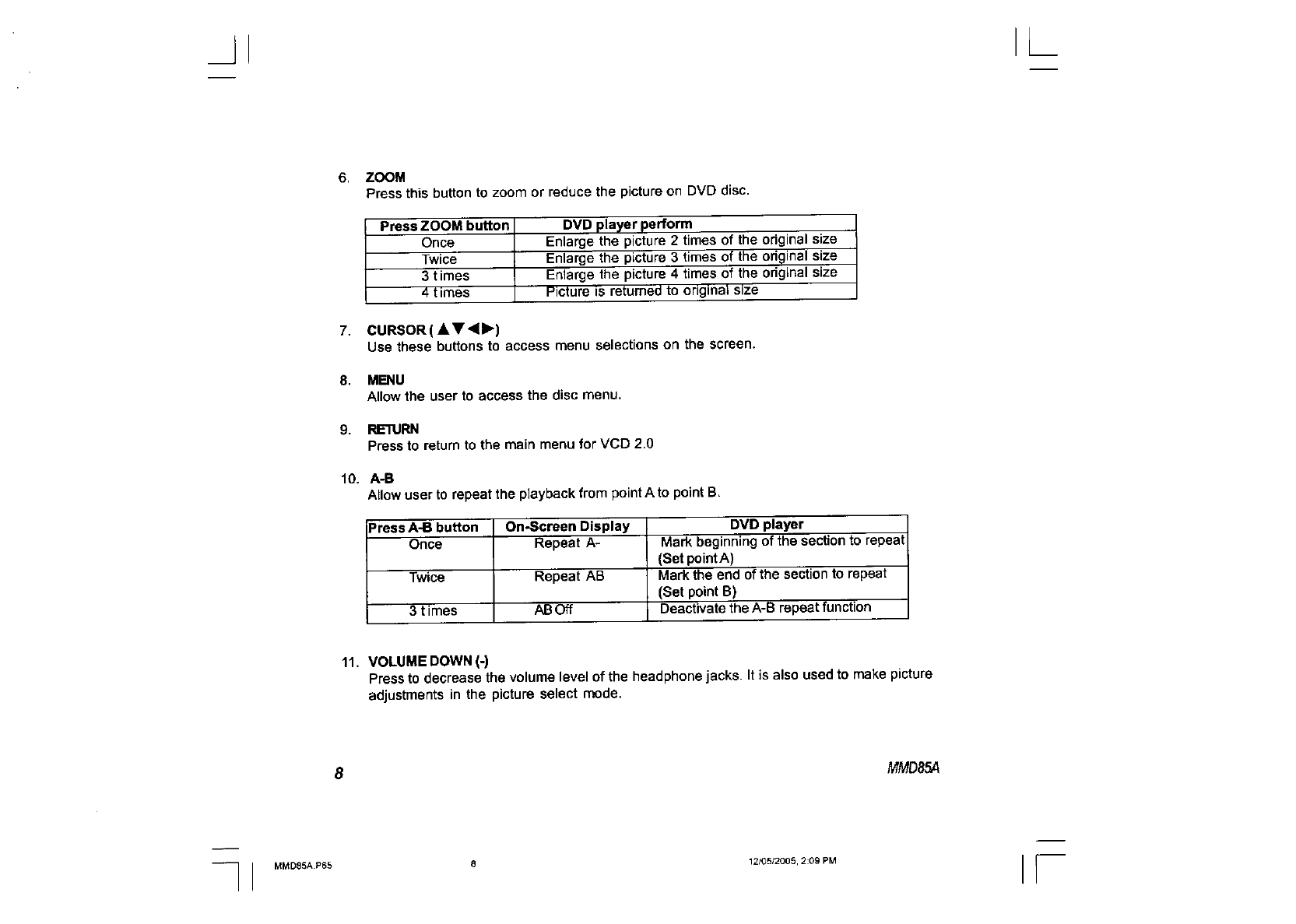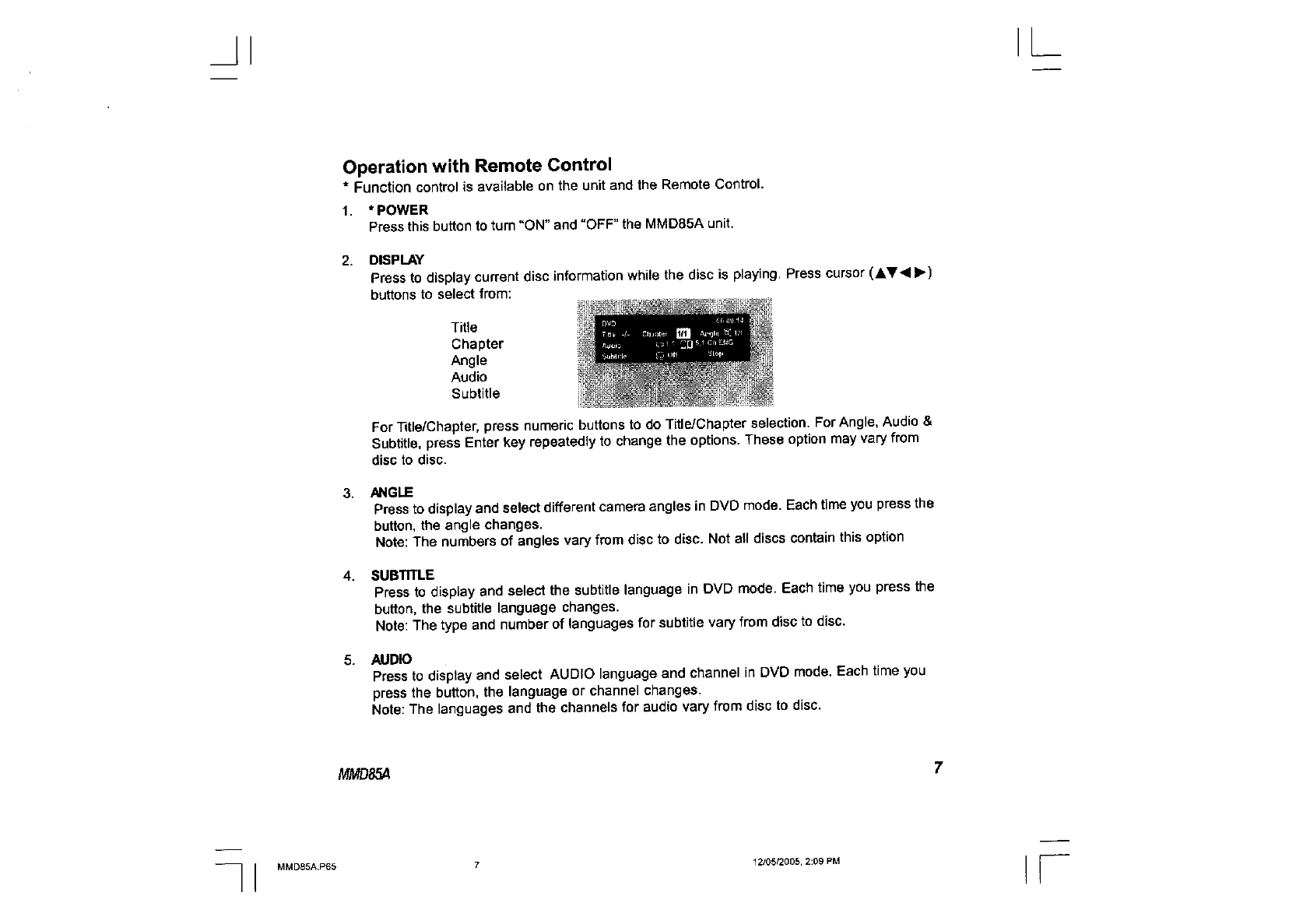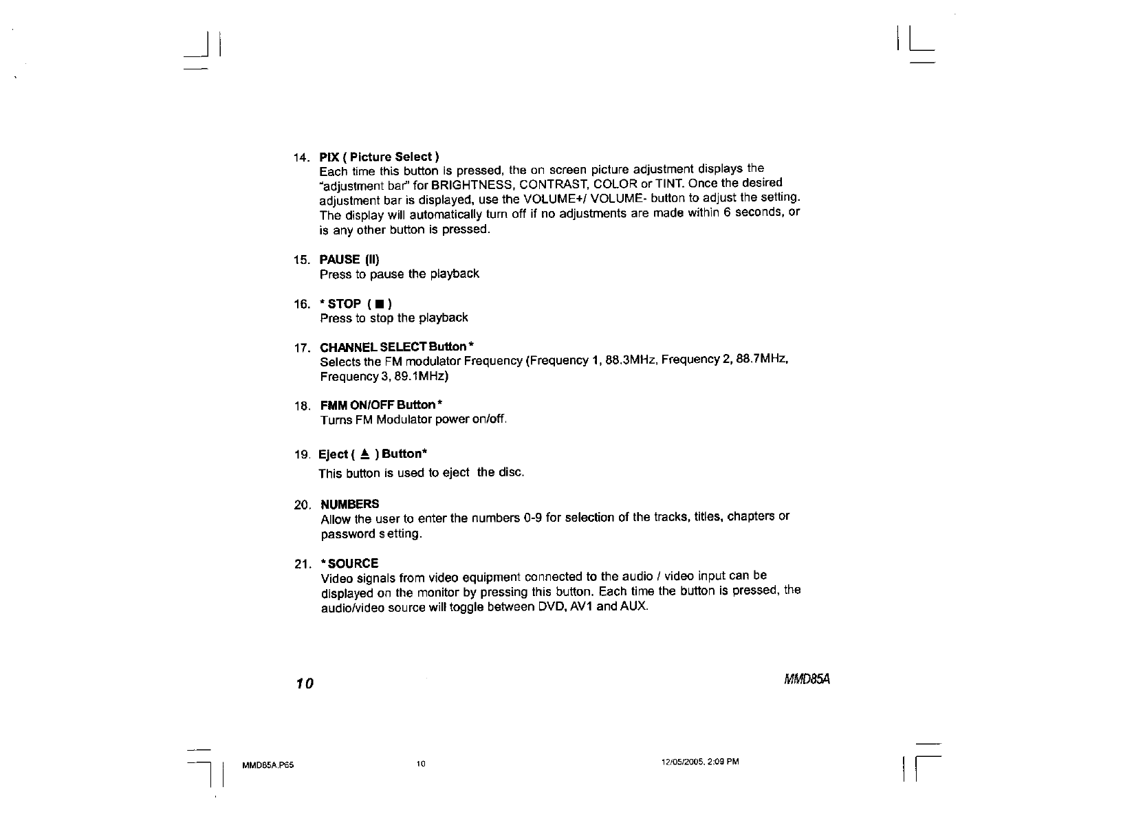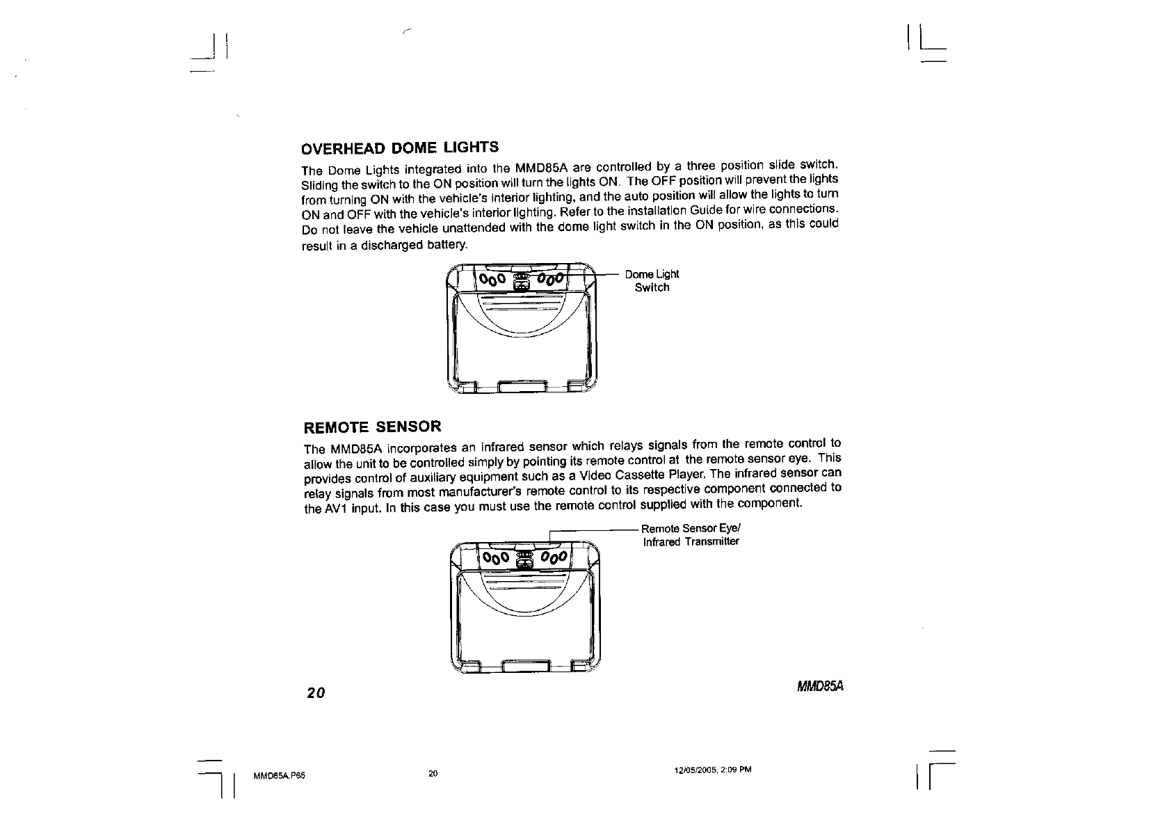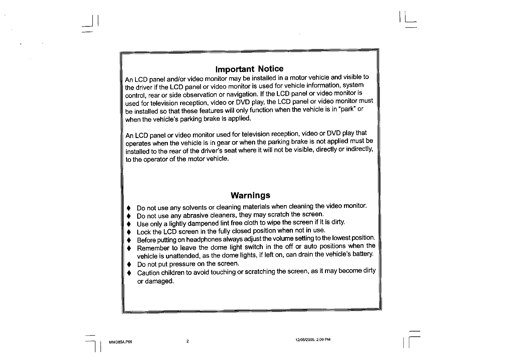 Action Electronics 9R3MMD85A 8.5" Overhead LCD TV/Monitor w/ DVD Player User Manual