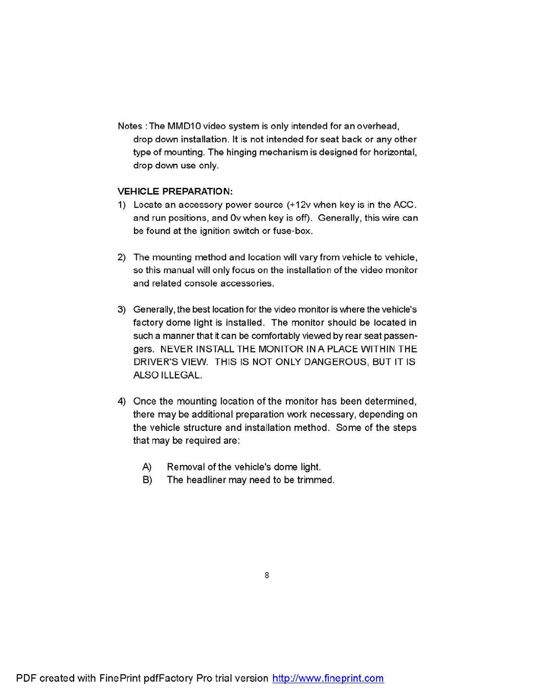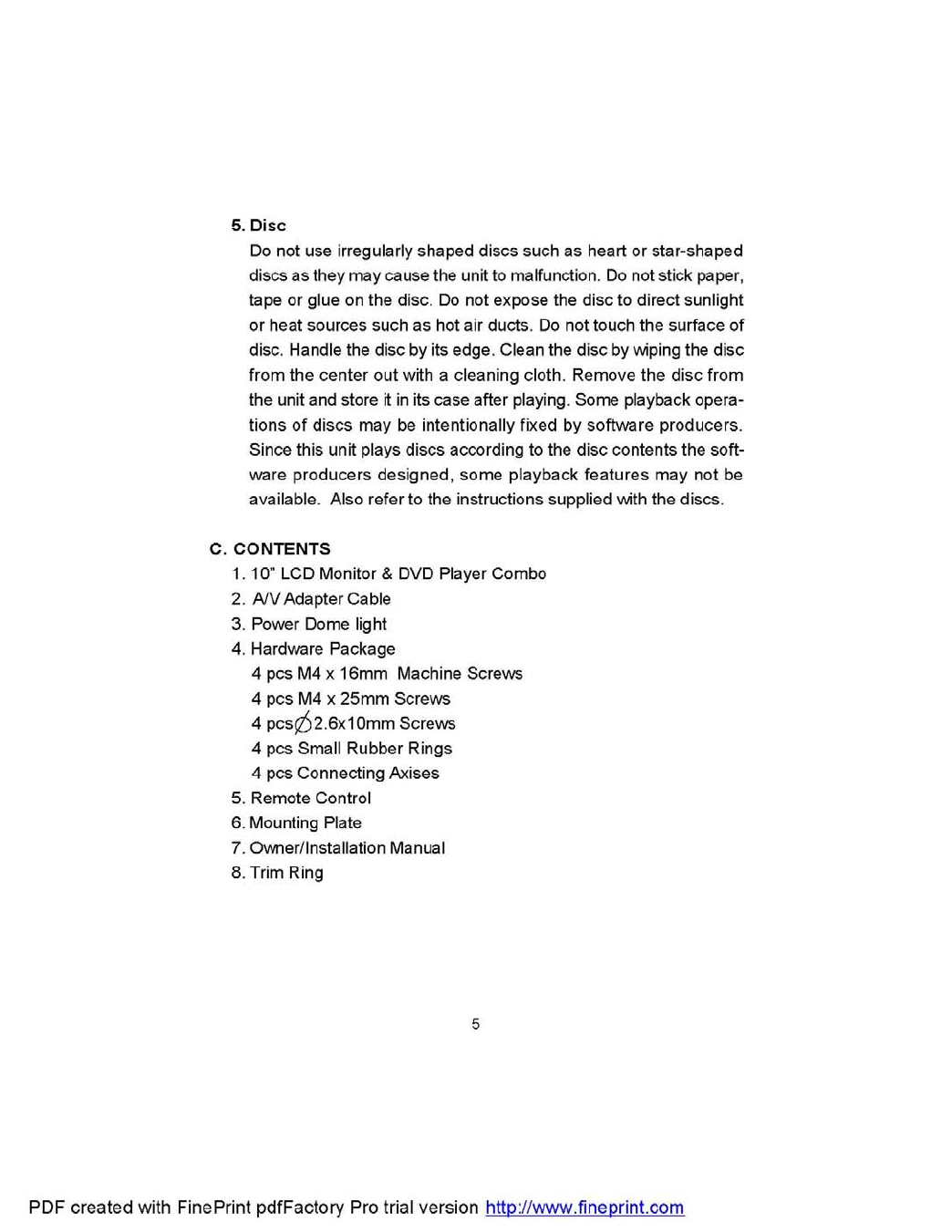 Action Technology 4106 Roof Mount 10" Drop Down LCD Monitor / DVD Player User Manual ID F06552 F0625