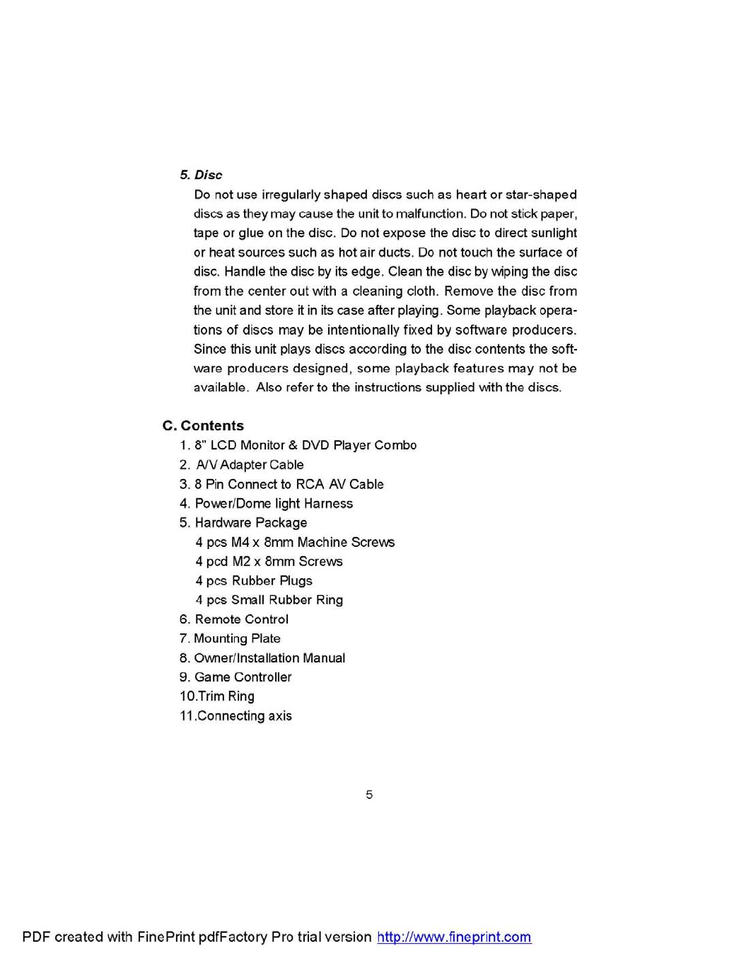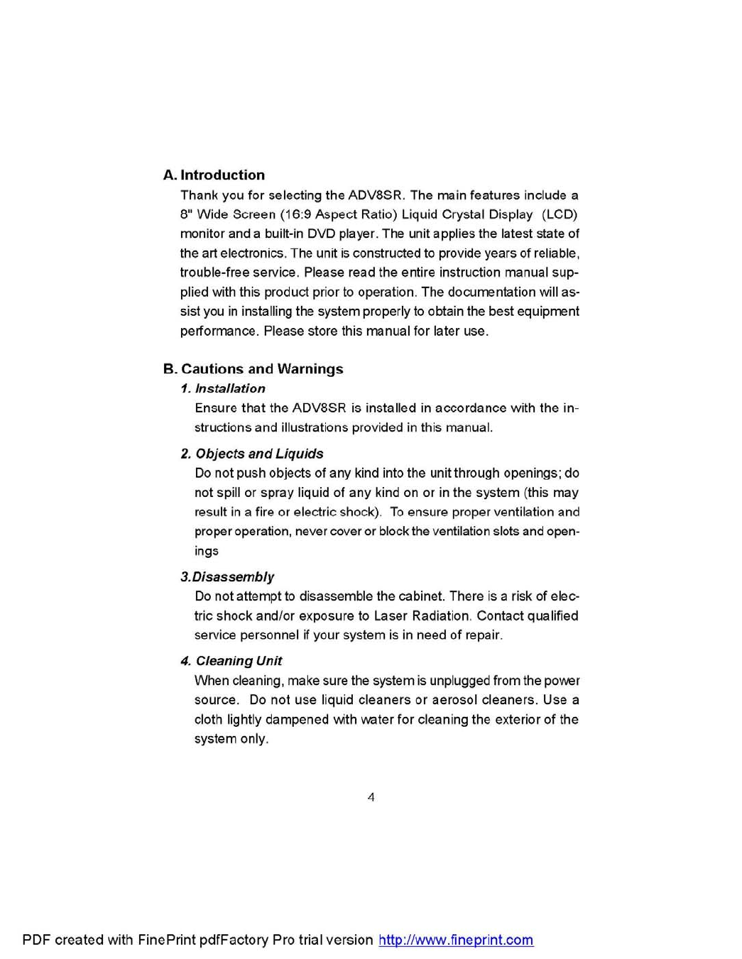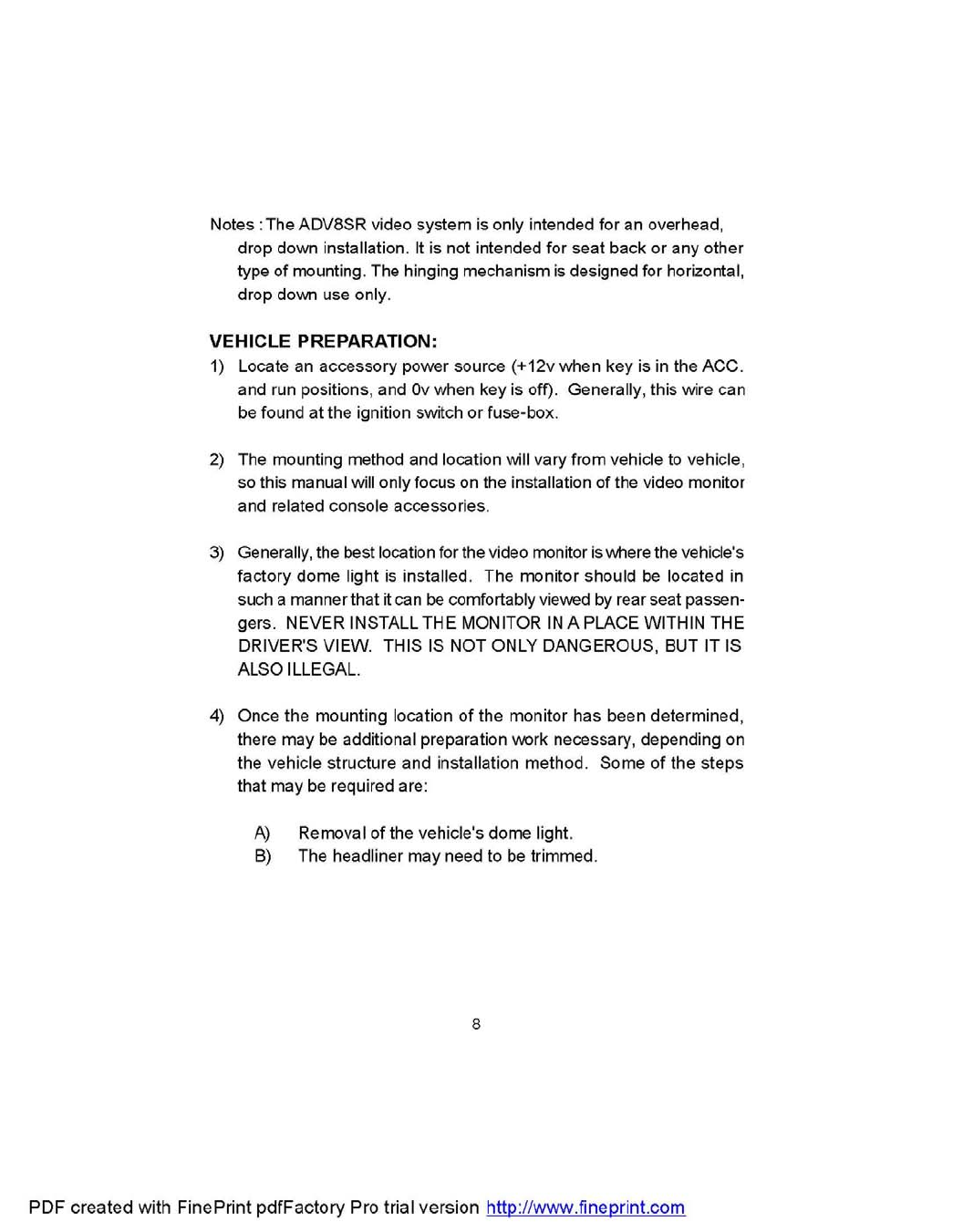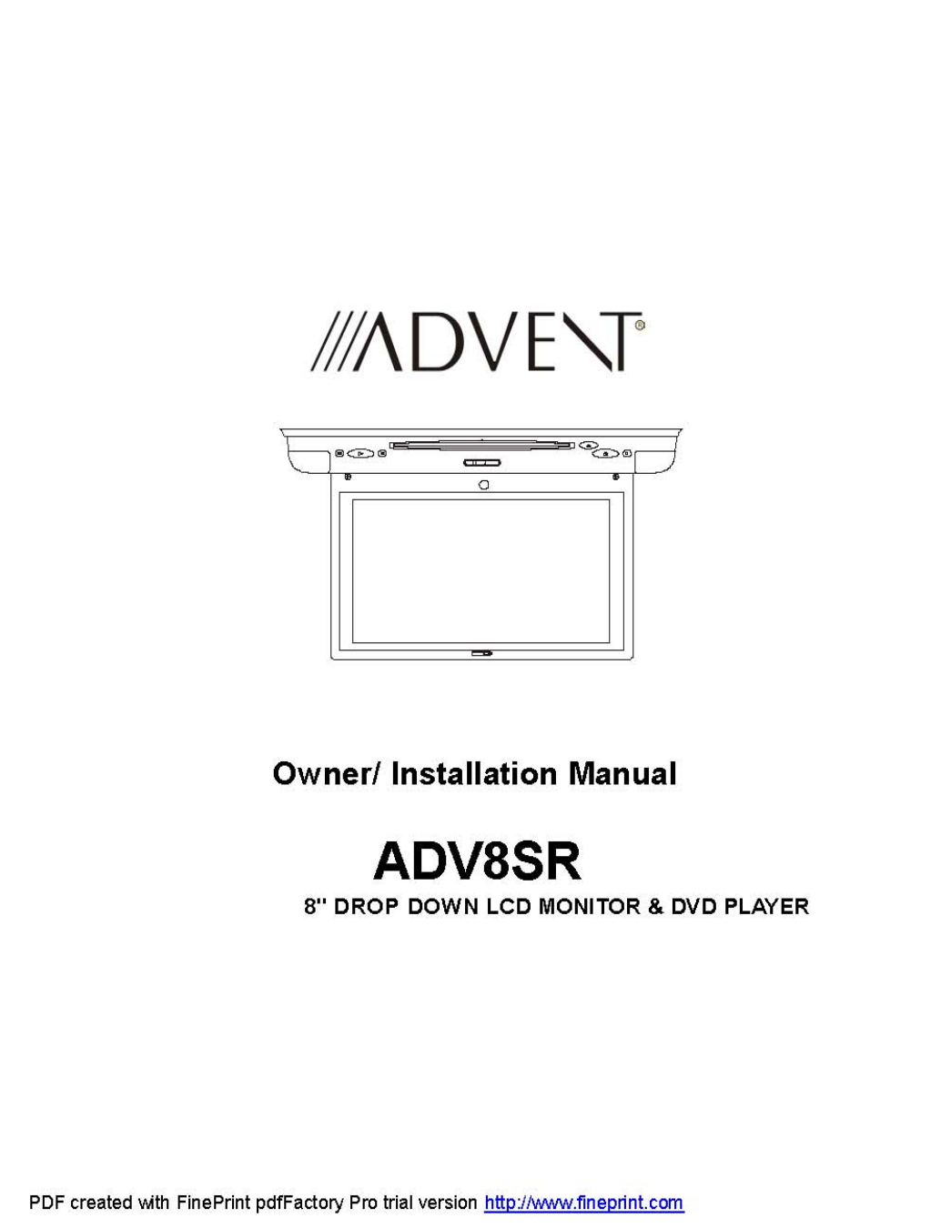 Action Technology 5806 Roof Mount 8" Drop Down LCD Monitor / DVD Player User Manual ID F06112 F0606