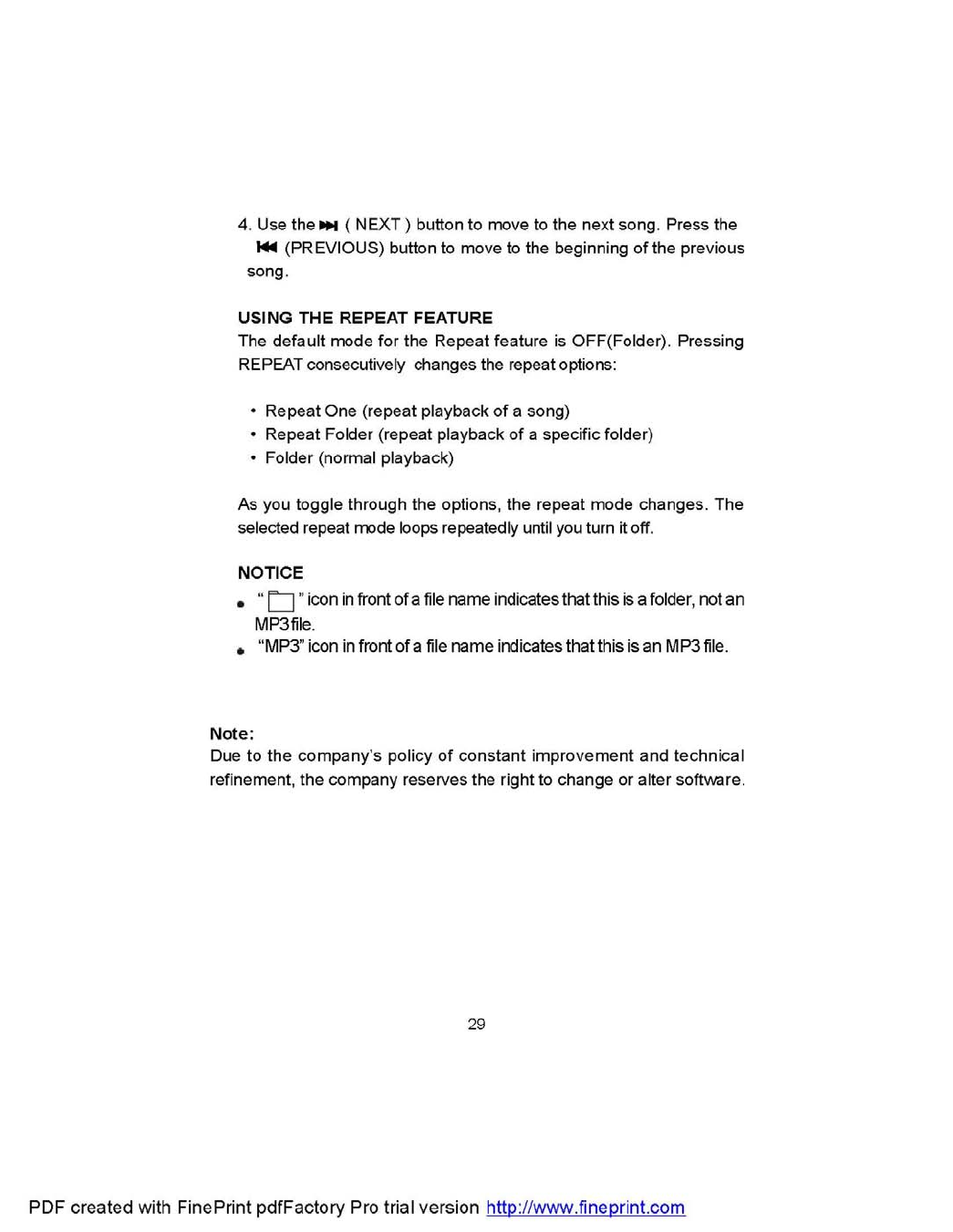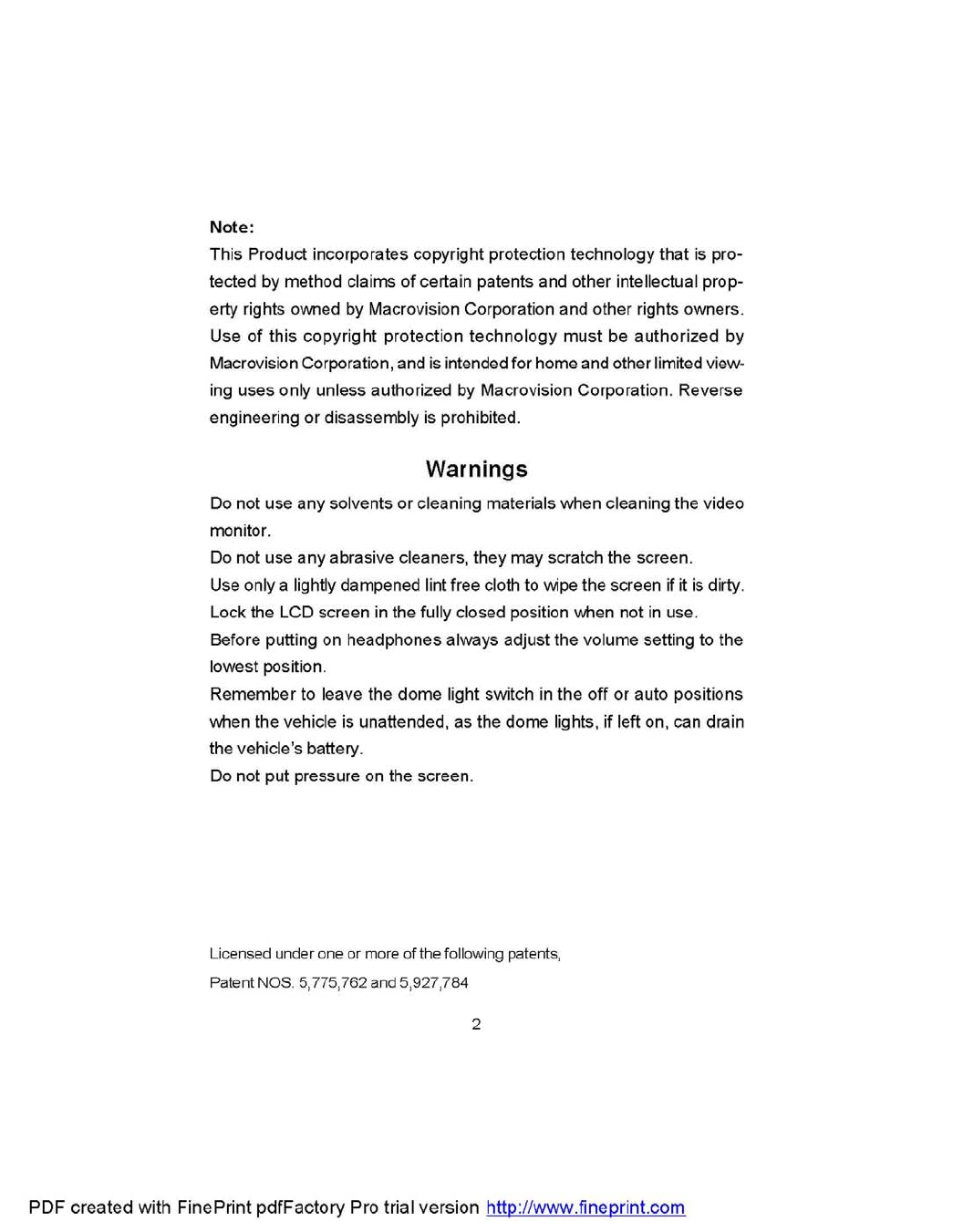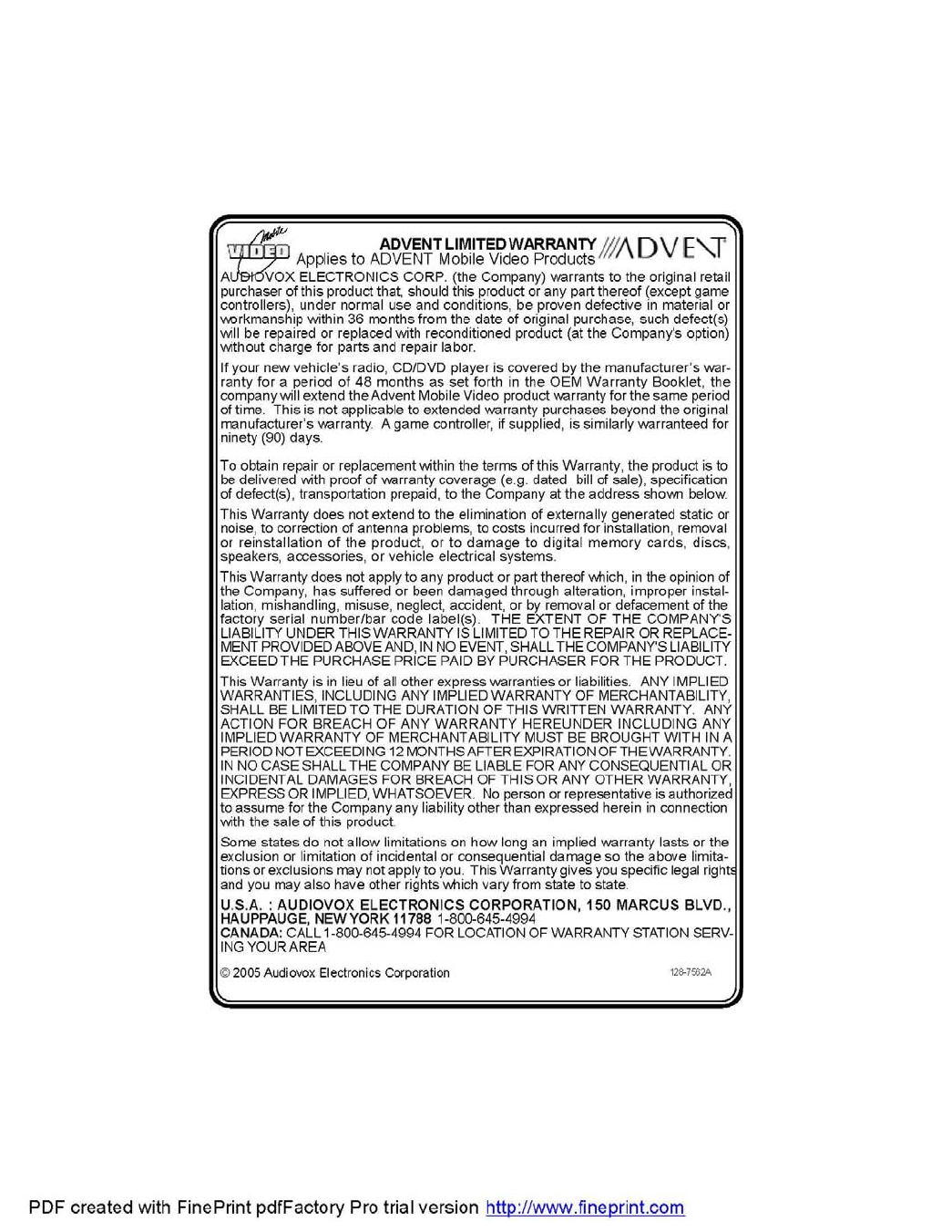 NOTE: THE MANUFACTURER IS NOT RESPONSIBLE FOR ANY RADIO OR TV