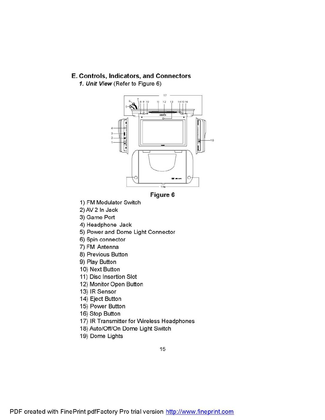 Action Technology (Shenzhen) Co., Ltd. Roof Mount 8" Drop Down LCD Monitor / DVD Player ID F06112 F0606