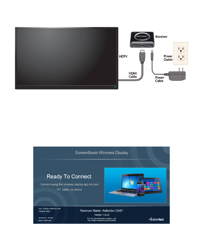 To connect the ScreenBeam Display Receiver to an HDTV monitor, make sure you