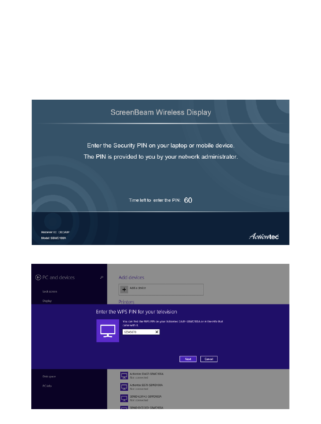 sNon WiDi/Miracast ready laptops and PCs with Actiontec USB Transmitter