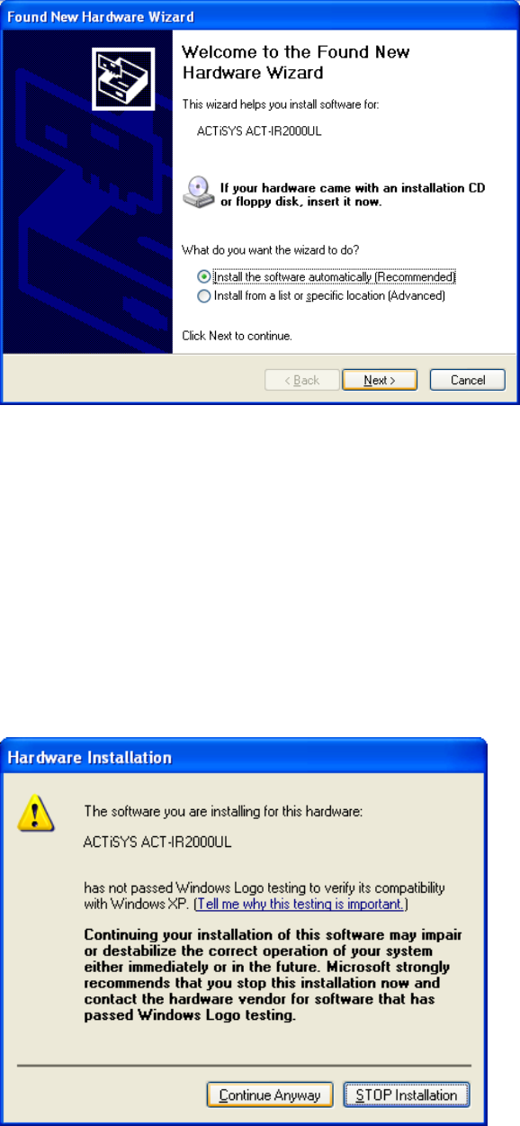 7 ACTISYS ACT-IR2000UL SERIES DRIVER INSTALLATION FOR WINDOWS XP..................................... 7