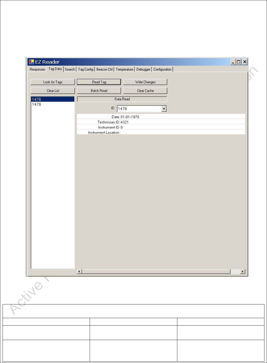Table 4 - Tag Data Screen