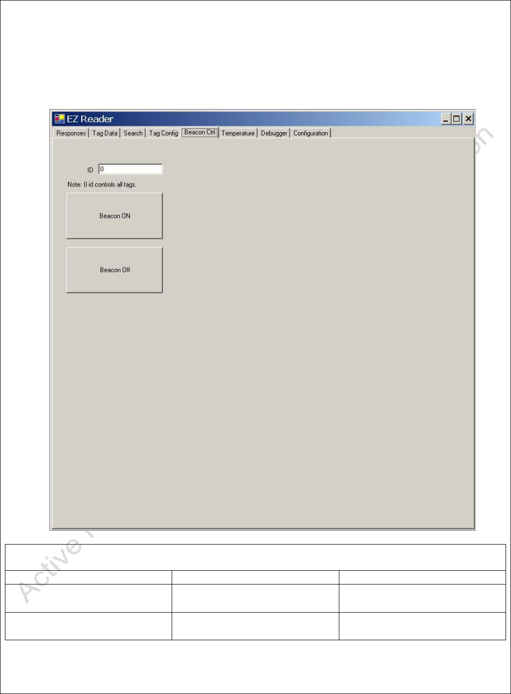 Table 6 - Beacon Control Screen