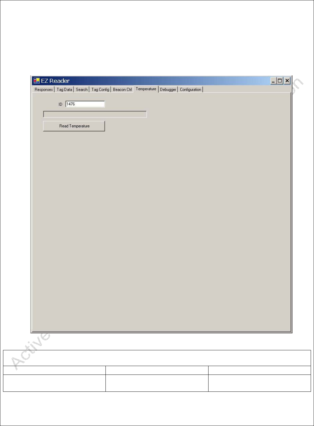 Read Temperature Button Initiates Reading of Tag