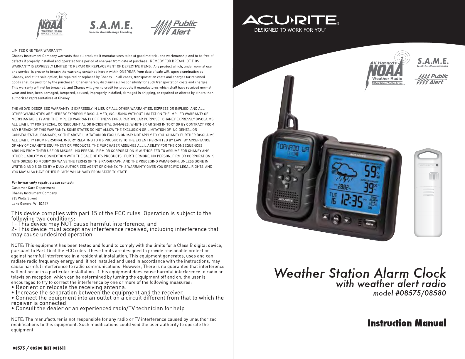 Acu Rite Weather Radio 8575 Users Manual 08580.INST.11