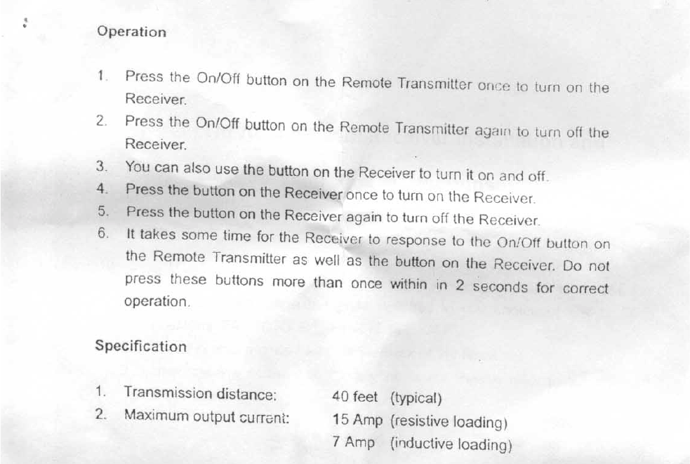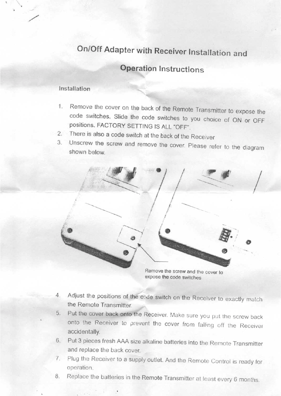 Acumen Technologies 062601A Remote Control AC Transmitter User Manual user manaul