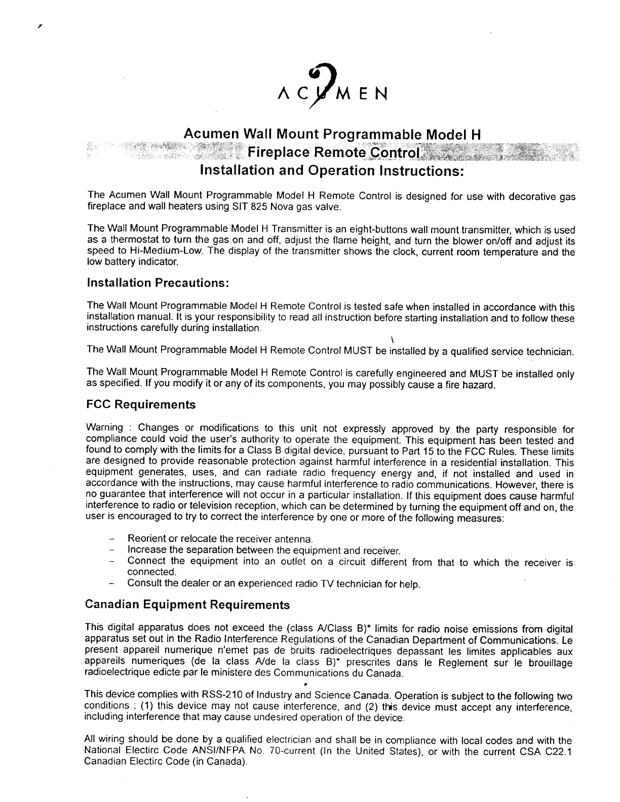Acumen Technologies Ltd Acumen, Inc. Wall Mount Programmable Thermostat W Users Manual
