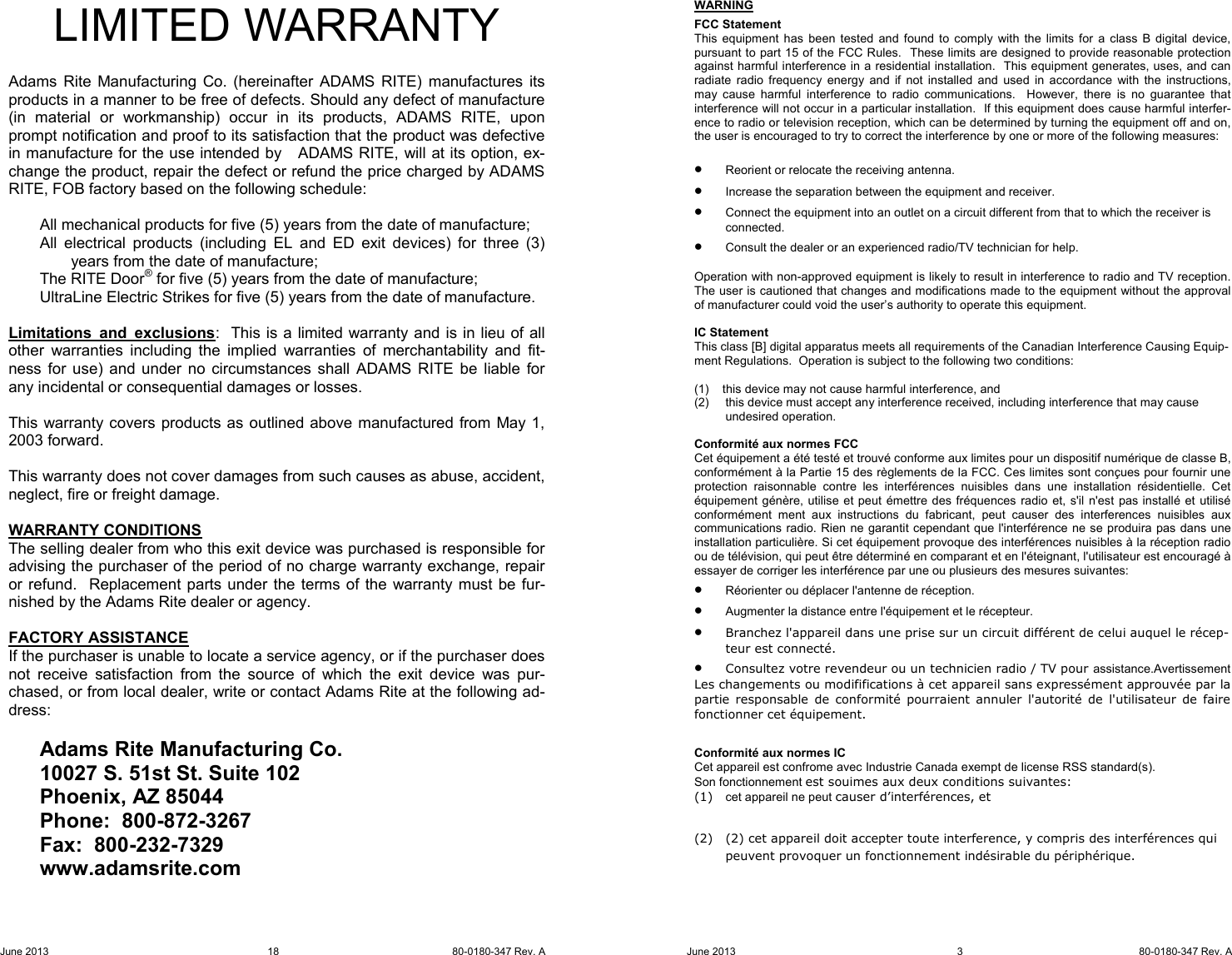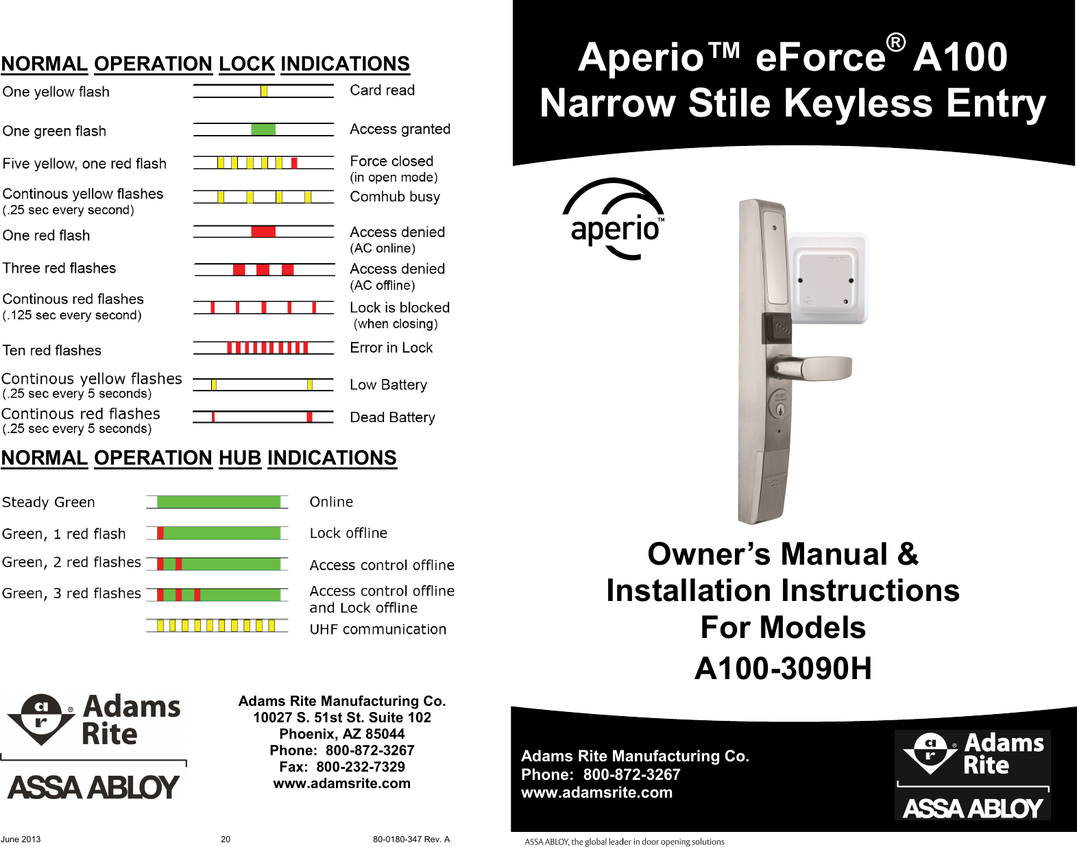 Adams Rite 3090AP A100 Wireless Door Lock User Manual