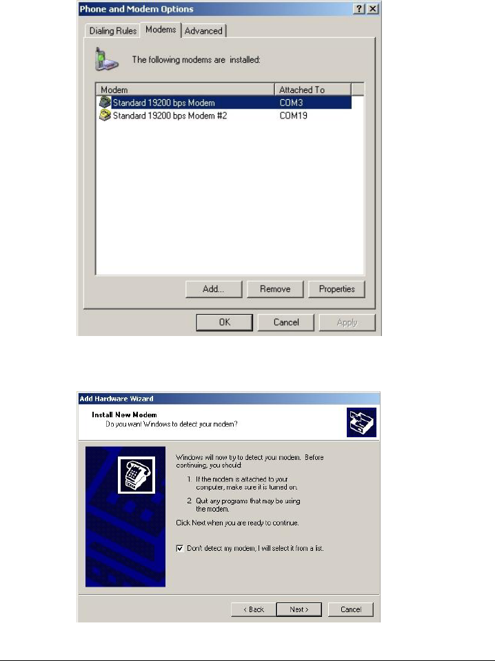 III. Check “Don’t detect my modem; I will select it from a list” and click