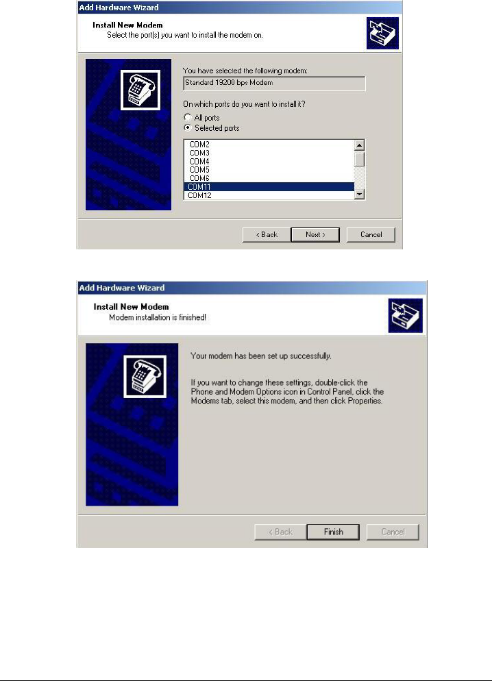 IV. From the Manufacturer list, choose (Standard Modem Types) and from