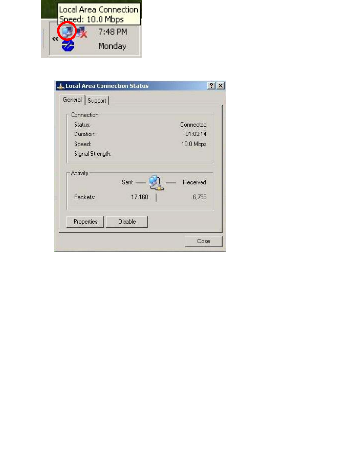 VI. From the PC, double-click on the Local Area Connection icon (located at