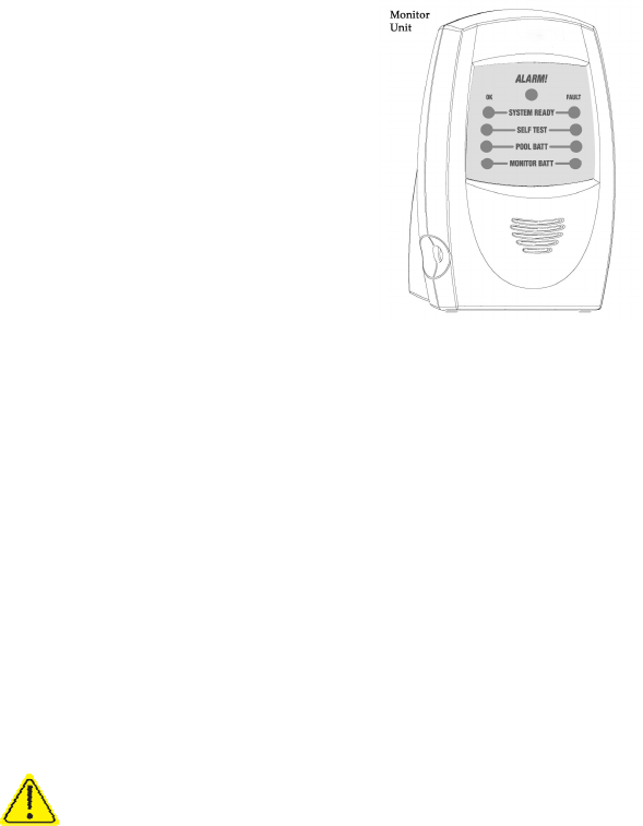 unit tests itself every six hours while it is installed. The pool side unit emits a horn chirp for