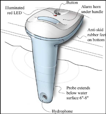 system is designed to monitor the swimming pool water’s acoustics for the sound of an intrusion