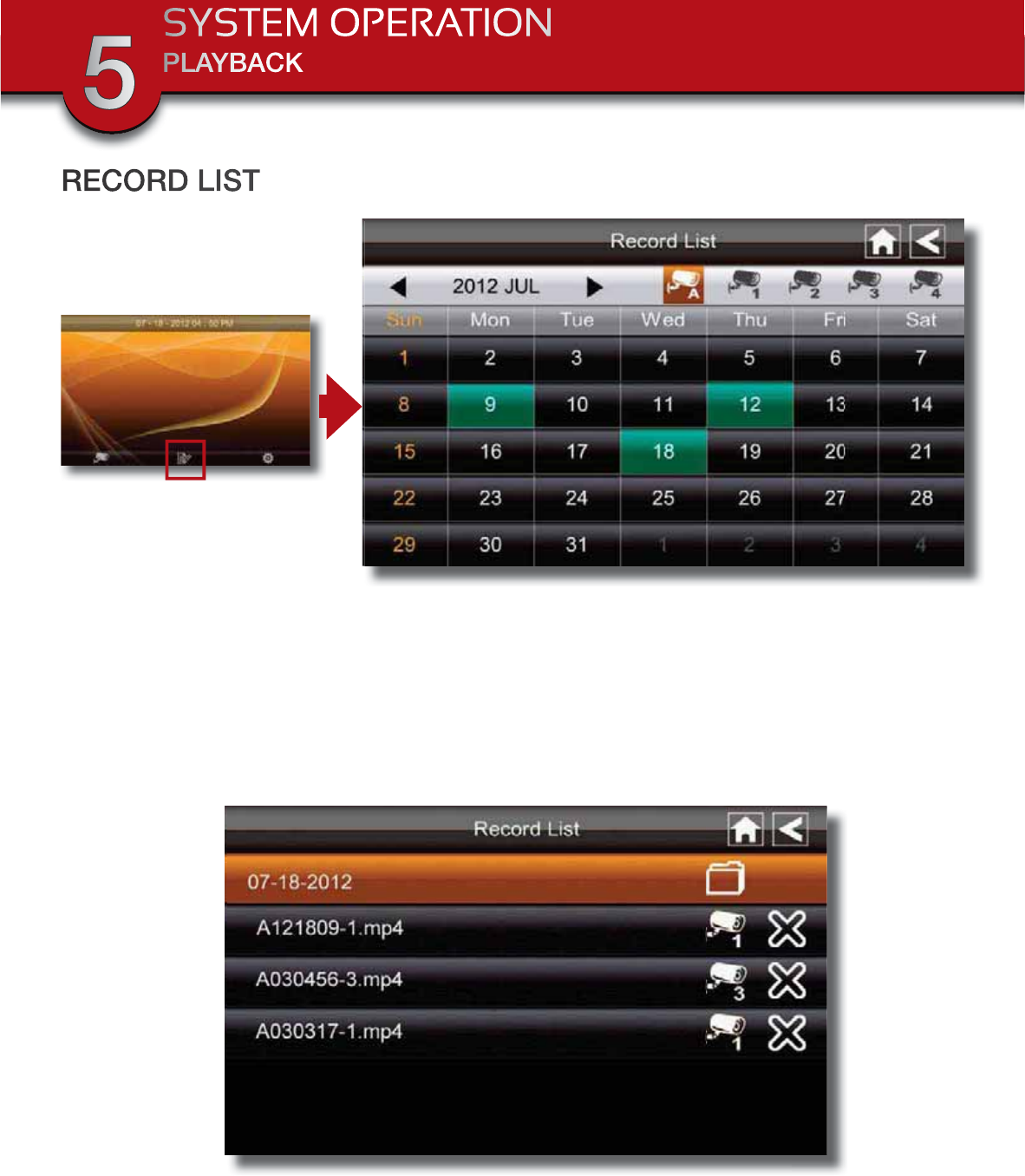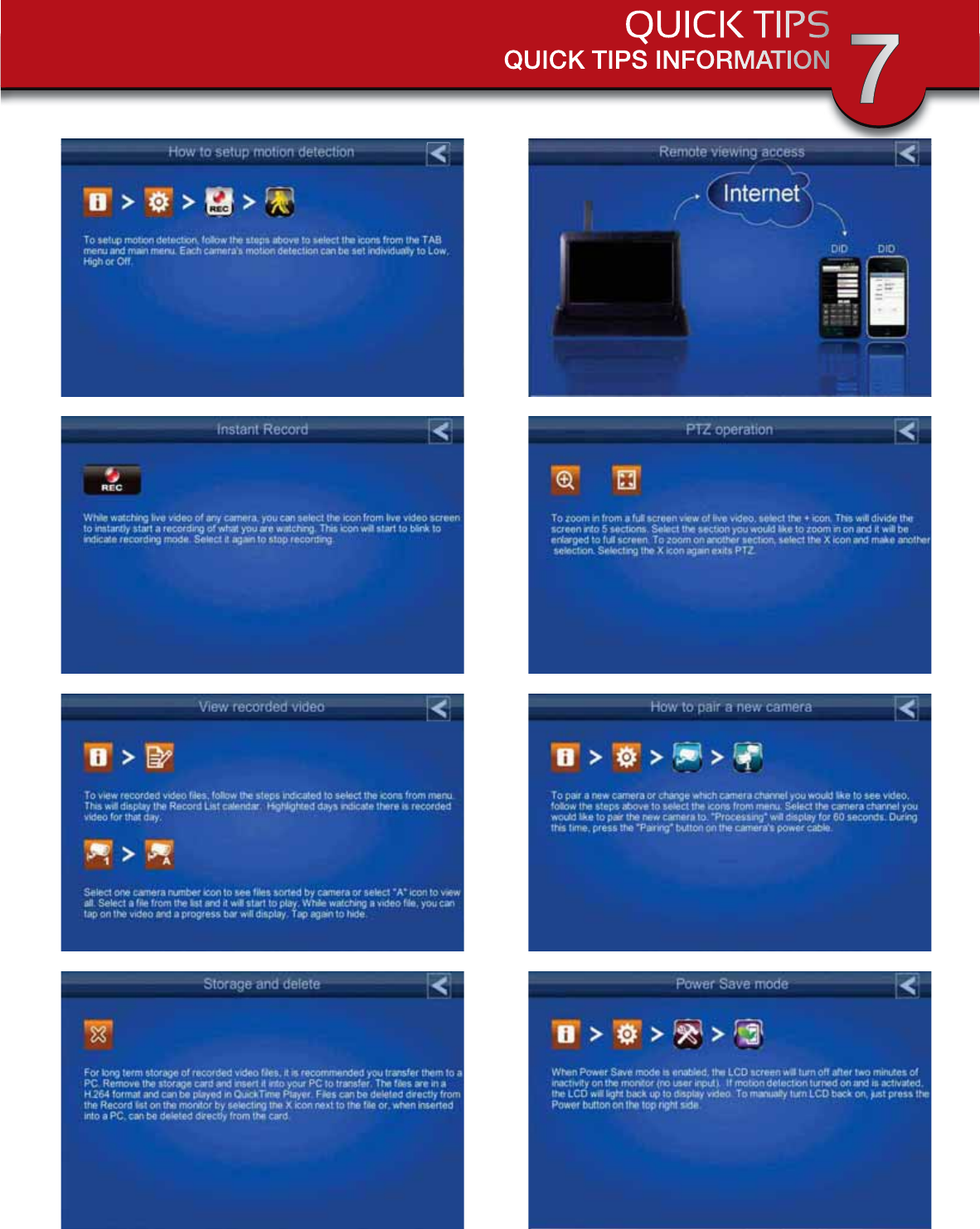 Recording Resolution Single Camera: 480 x 272, Quad Mode (4 cam) 320 x 240 (QVGA)