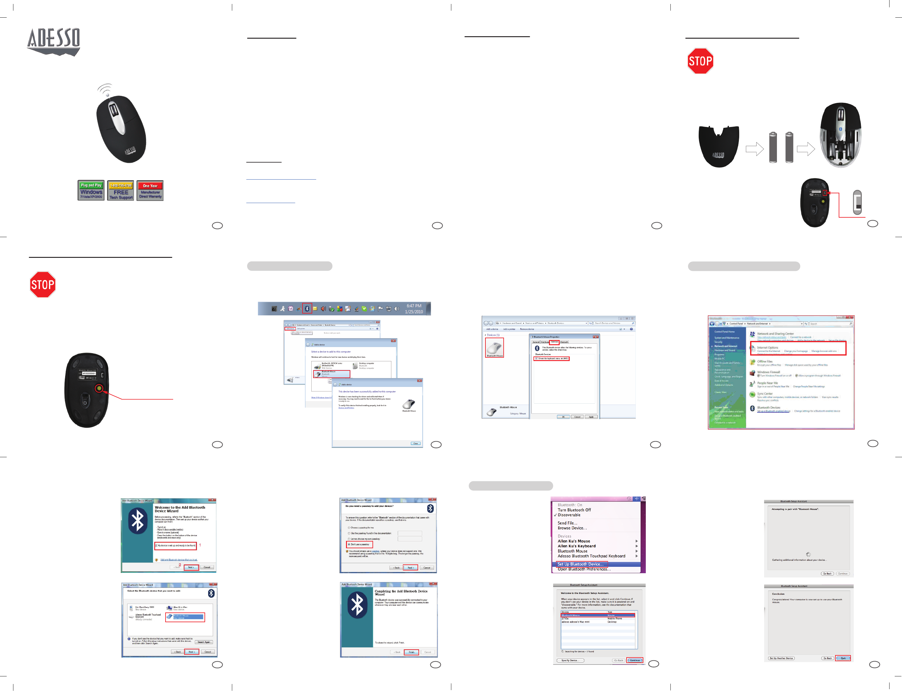Installing this Bluetooth™ Mouse in Windows 7, Vista ,XP and Mac