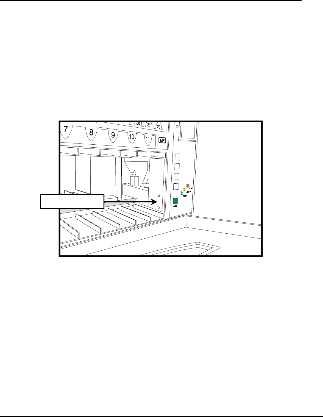 5.  Locate the interface connector on the inside right panel of your FastStor 22 directly to the right of the I/E Slot.