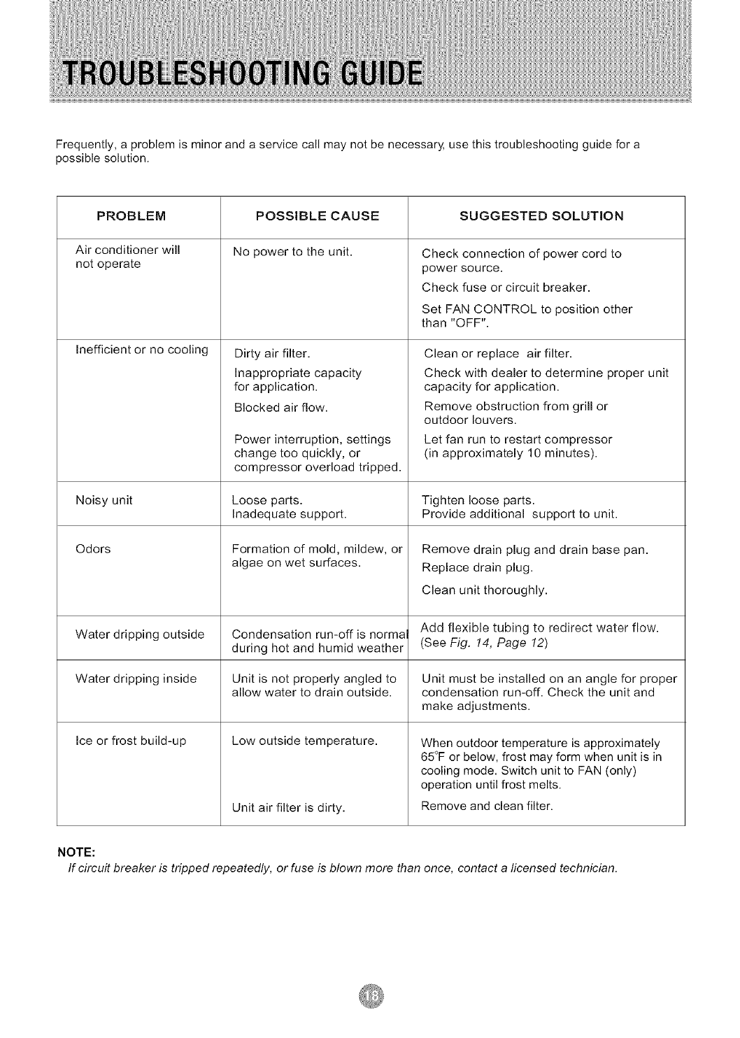 Si el cortacircuito interrumpe la corriente varias veces o el fusible se quema mas de una vez, comuniquese