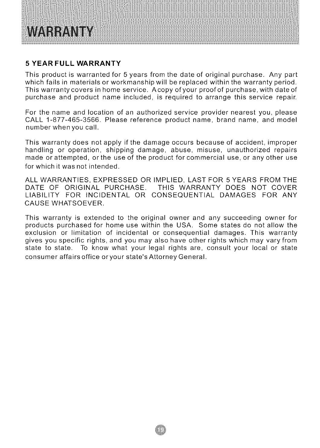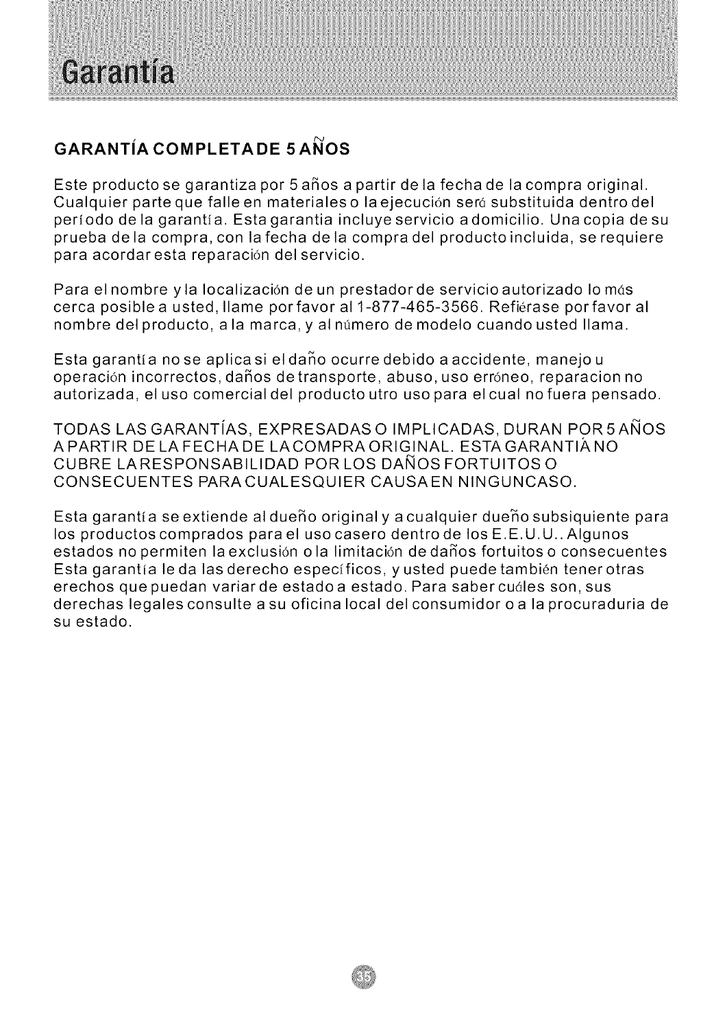 Este producto se garantiza por 5 a_os a partir dela fechade la compra original.
