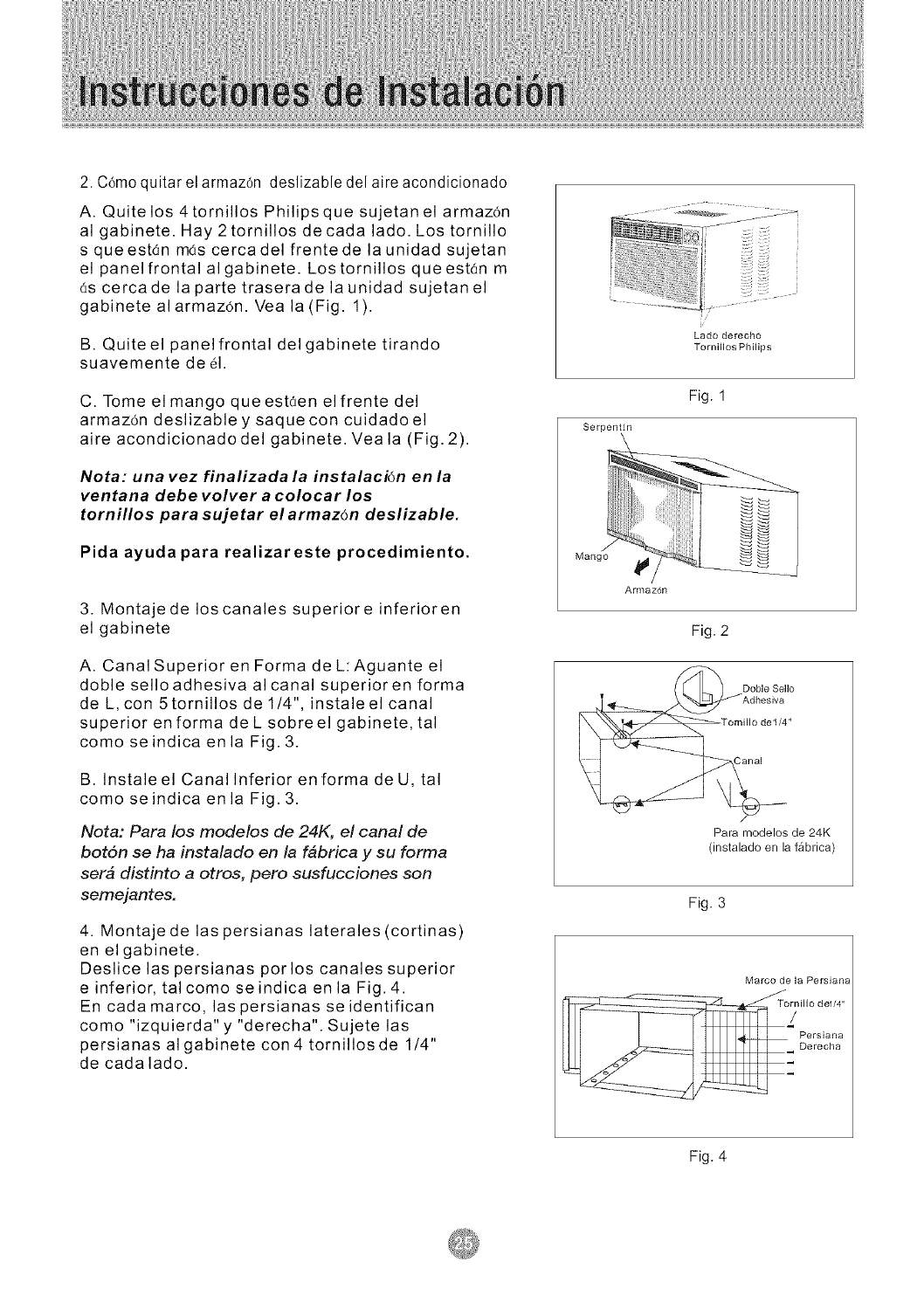 Instrucciones de Instalaci6n .................................. 24-28