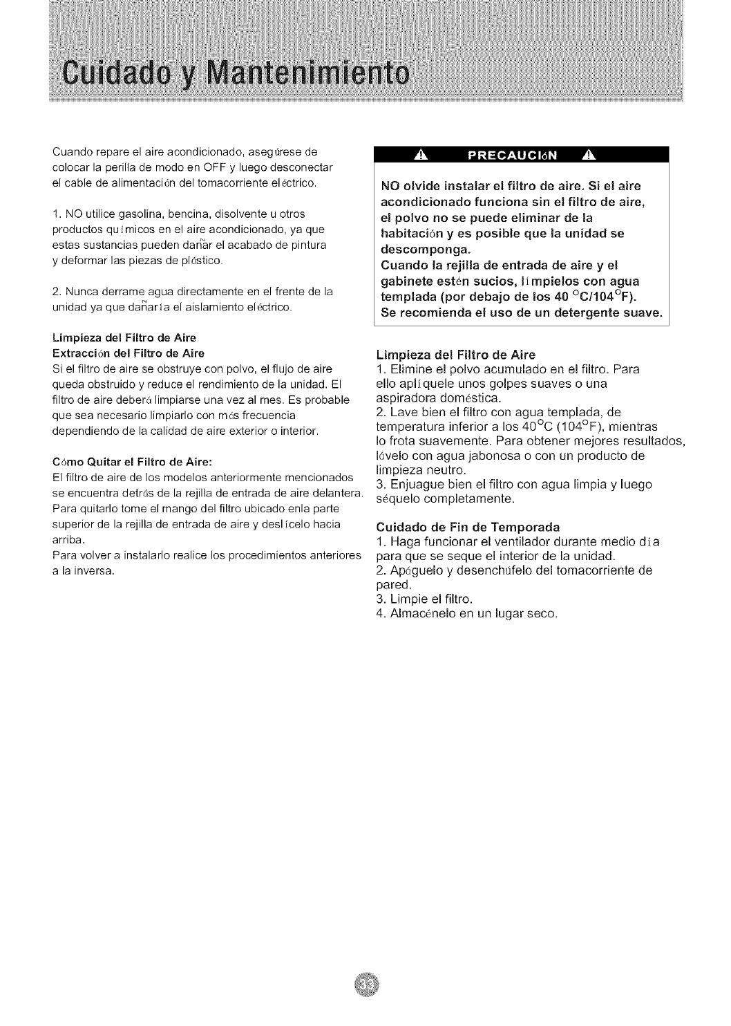 Cuidado y Mantenimiento ....................................... 33