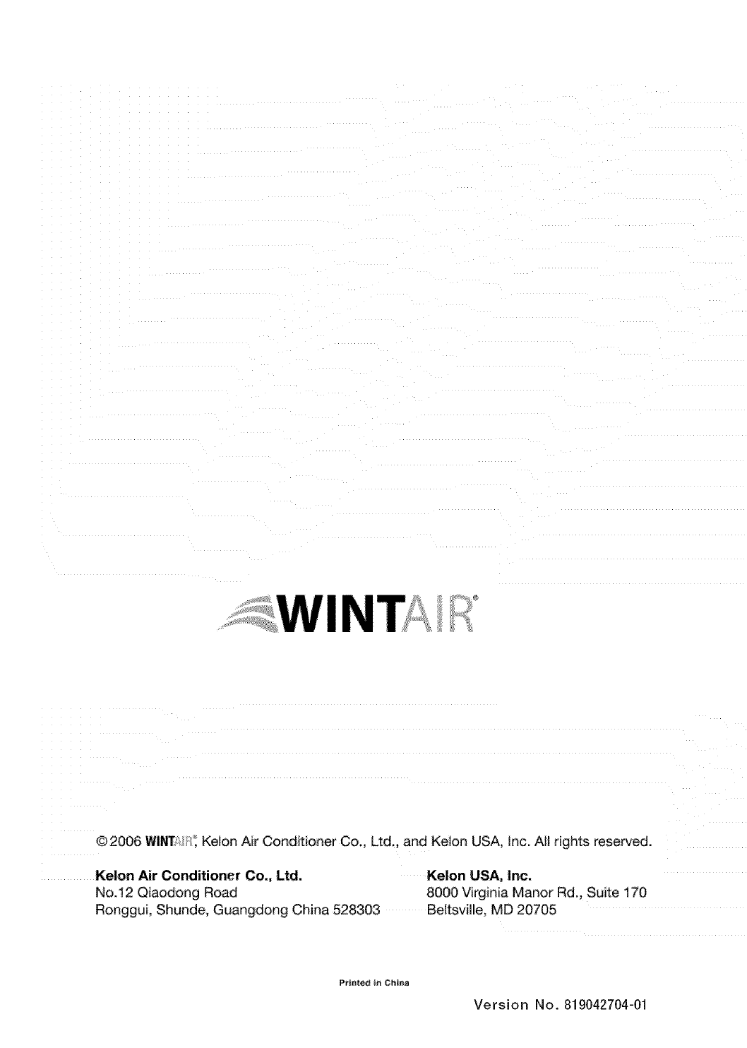 @2006 WlN_S_,: Kelon Air Conditioner Co., Ltd., and Kelon USA, Inc. All rights reserved