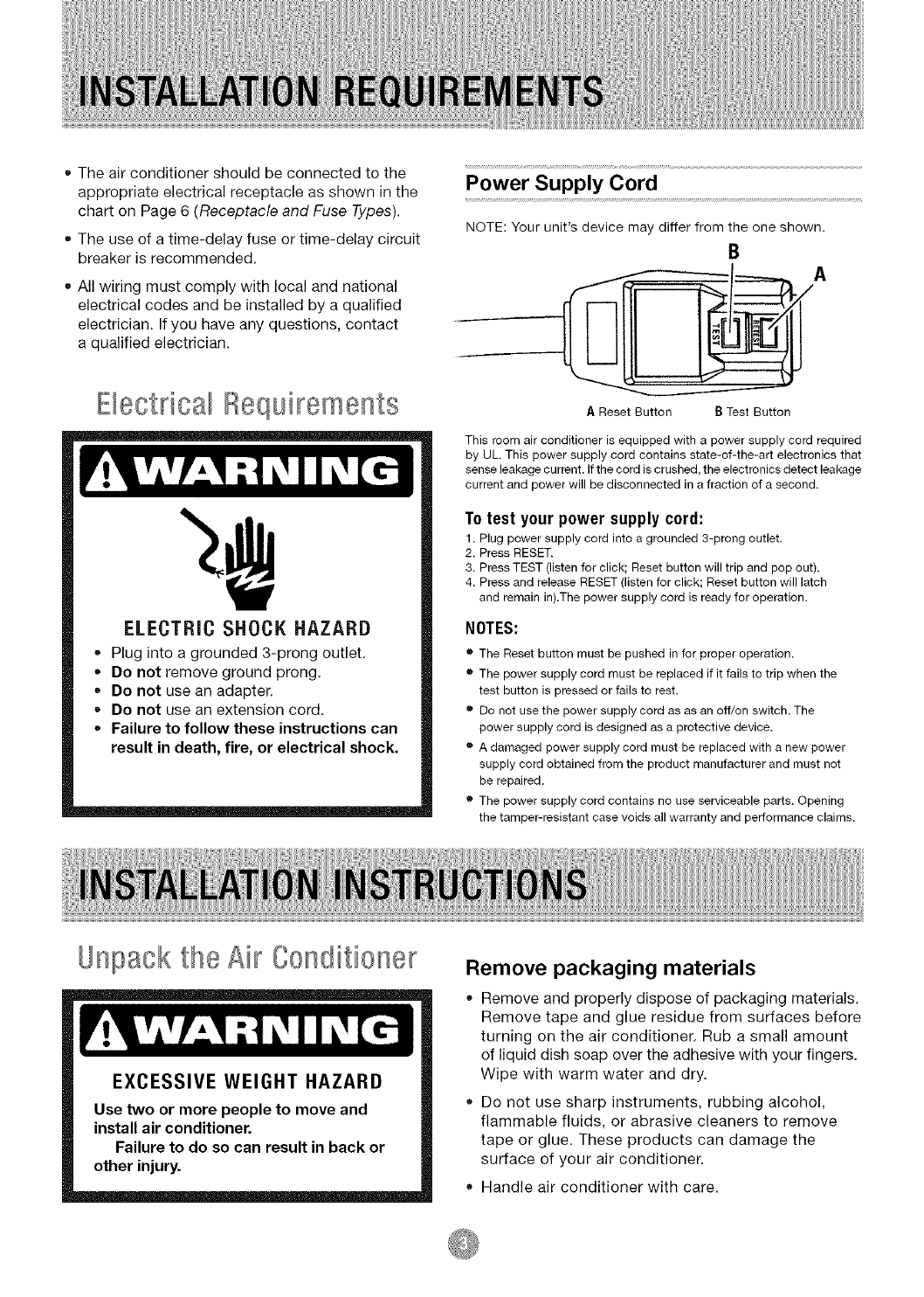 Air Conditioner Safety ......................................... 2-3