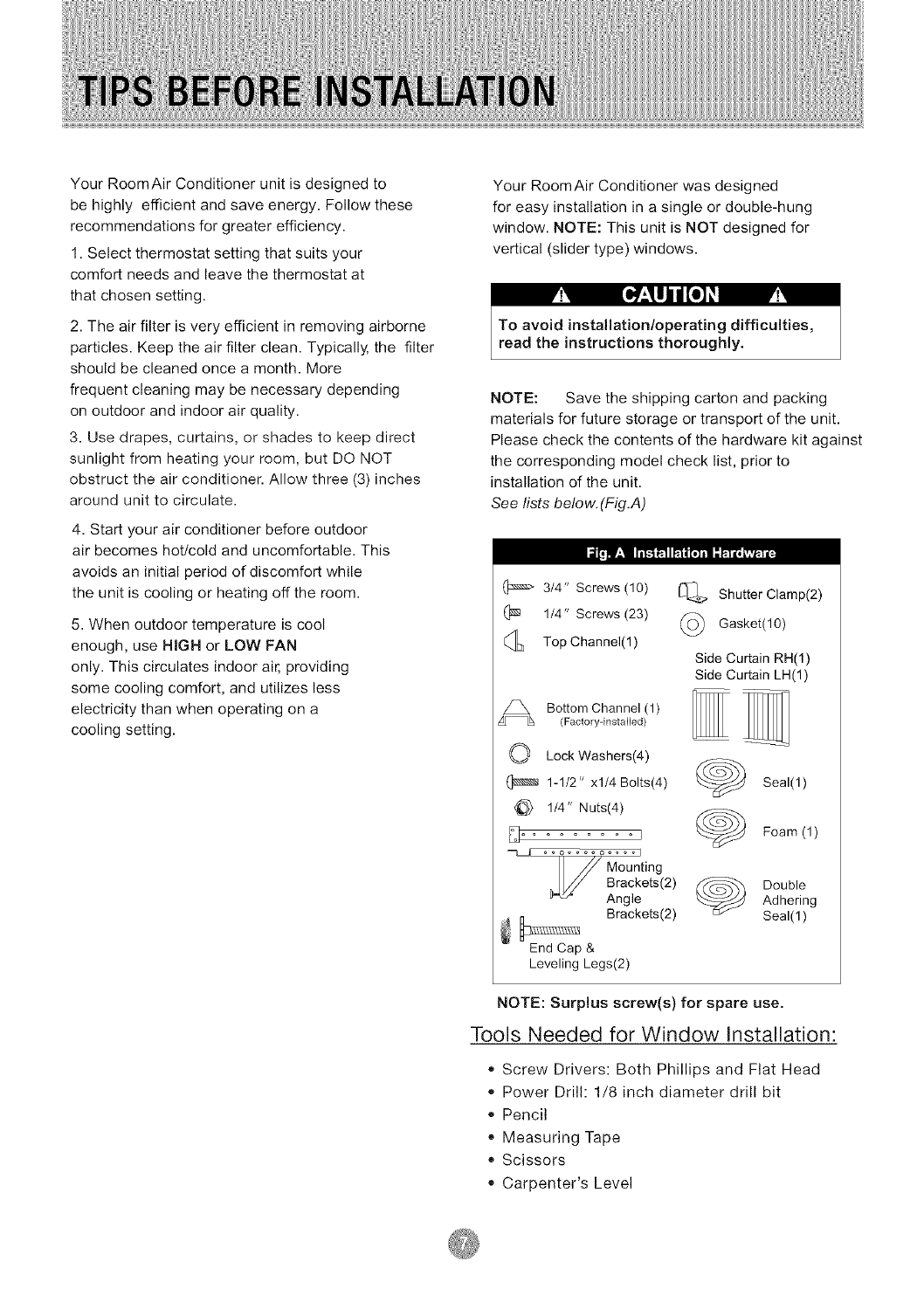 Tips Before Installation ......................................... 7