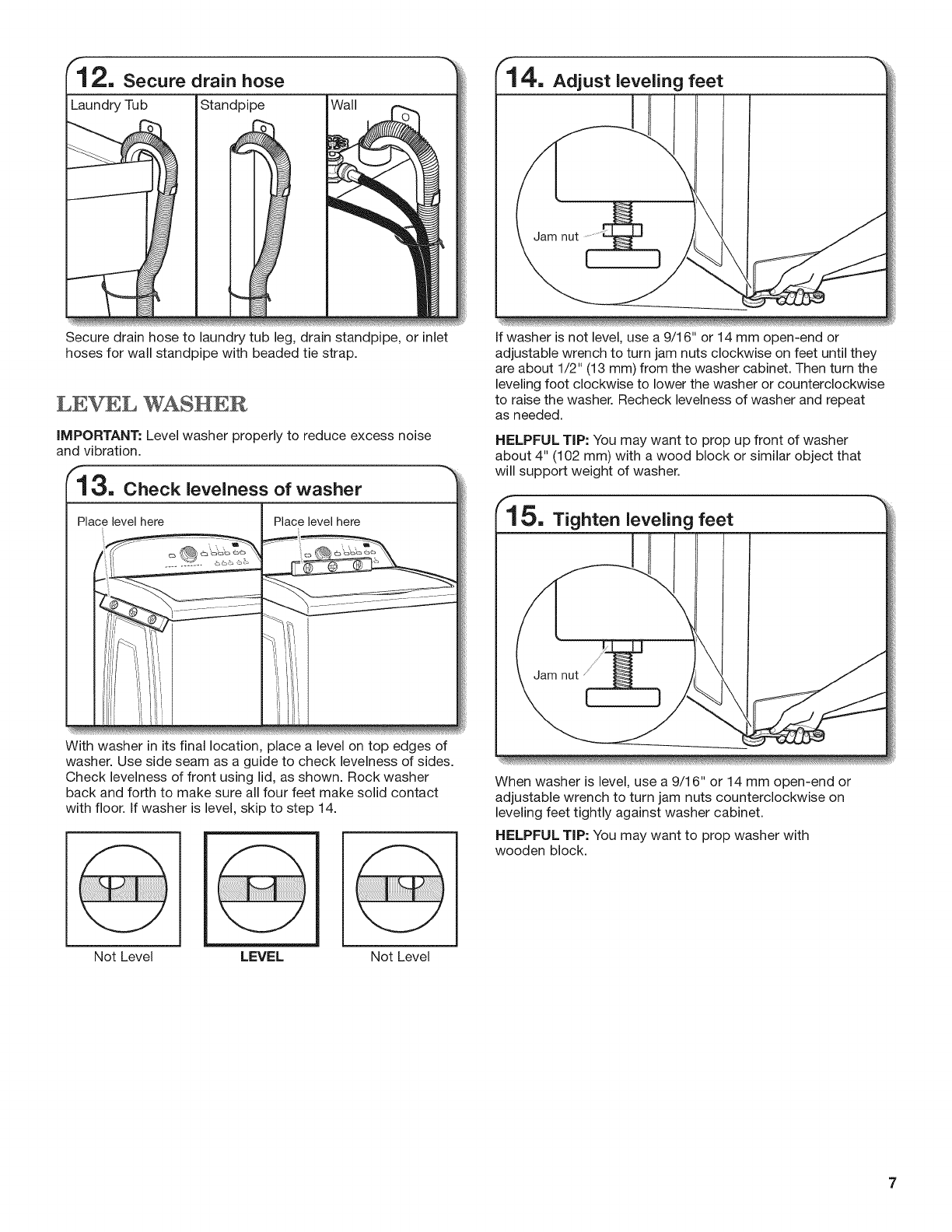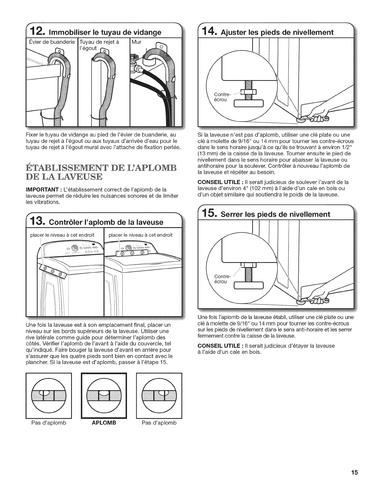 plancher. Si la laveuse est d'aplomb, passer a 1'6tape 15.