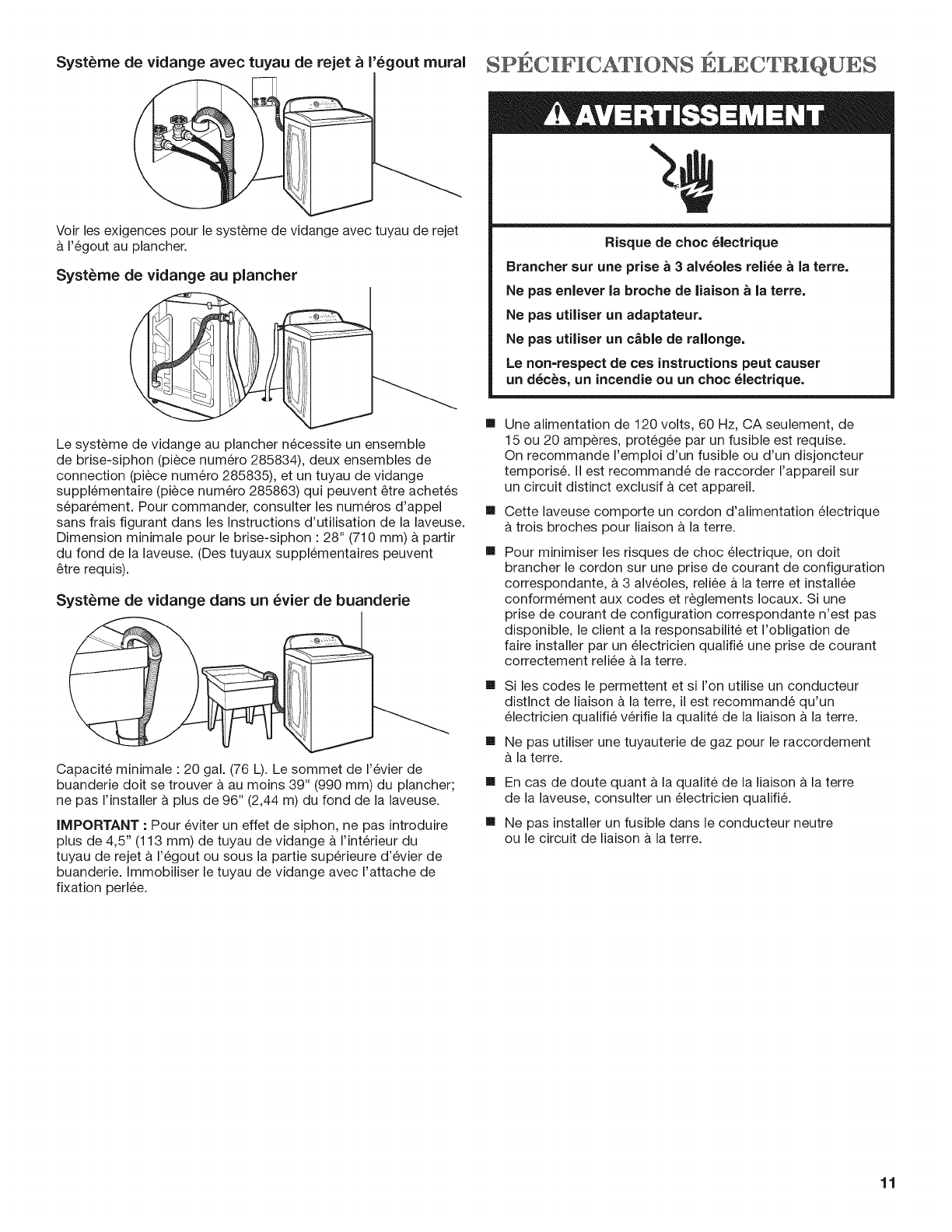 Une petite quantit6 d'eau peut entrer dans la laveuse. Elle