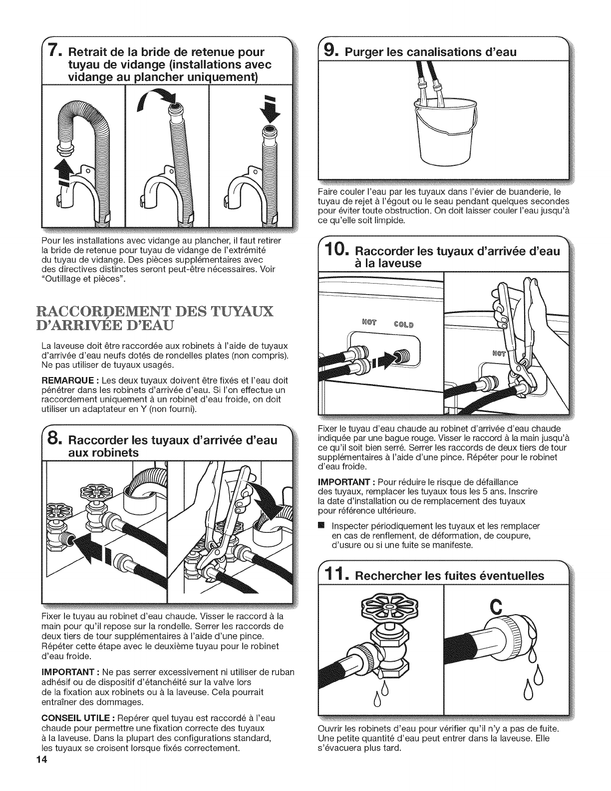 Raccordement des tuyau× d'arriv6e d'eau ........................ 14