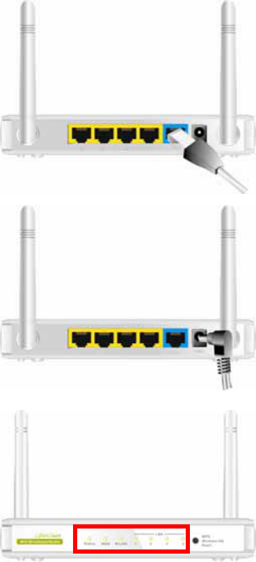 Wan port and Lan port and the leds are blink. In addition, Status led is