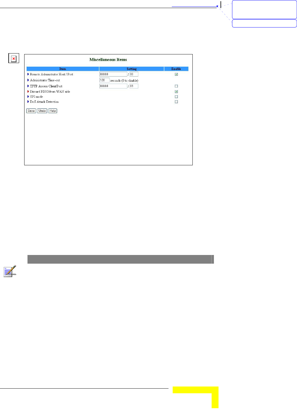 From the Miscellaneous Items window you can set the following: