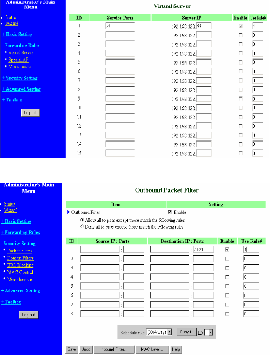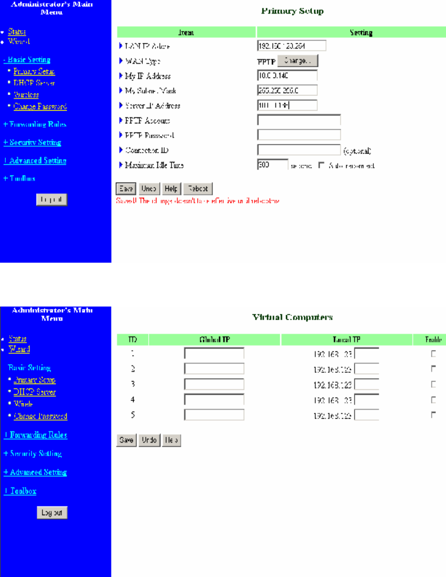 3. Go to the Web manager of Wireless Router to configure, like below: