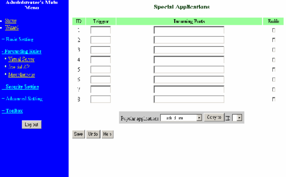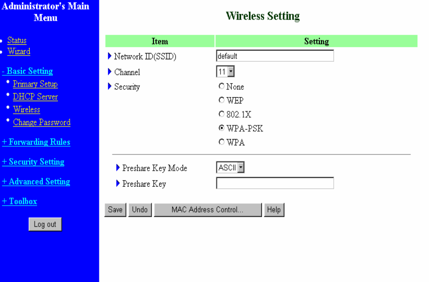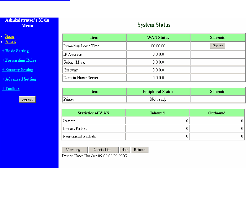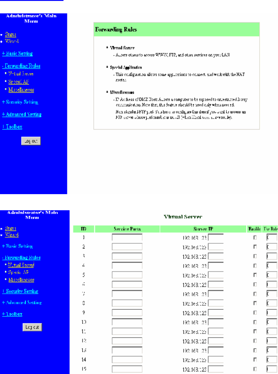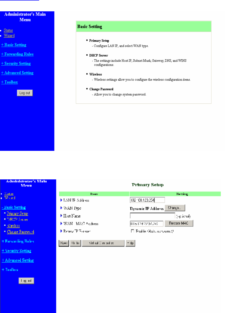1. Go to the Web manager of Wireless Router to configure, like below: