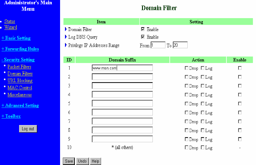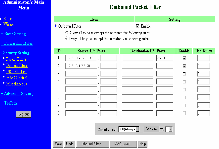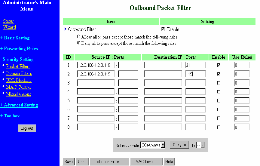All unwanted packets from outside intruders are blocked to protect your Intranet.