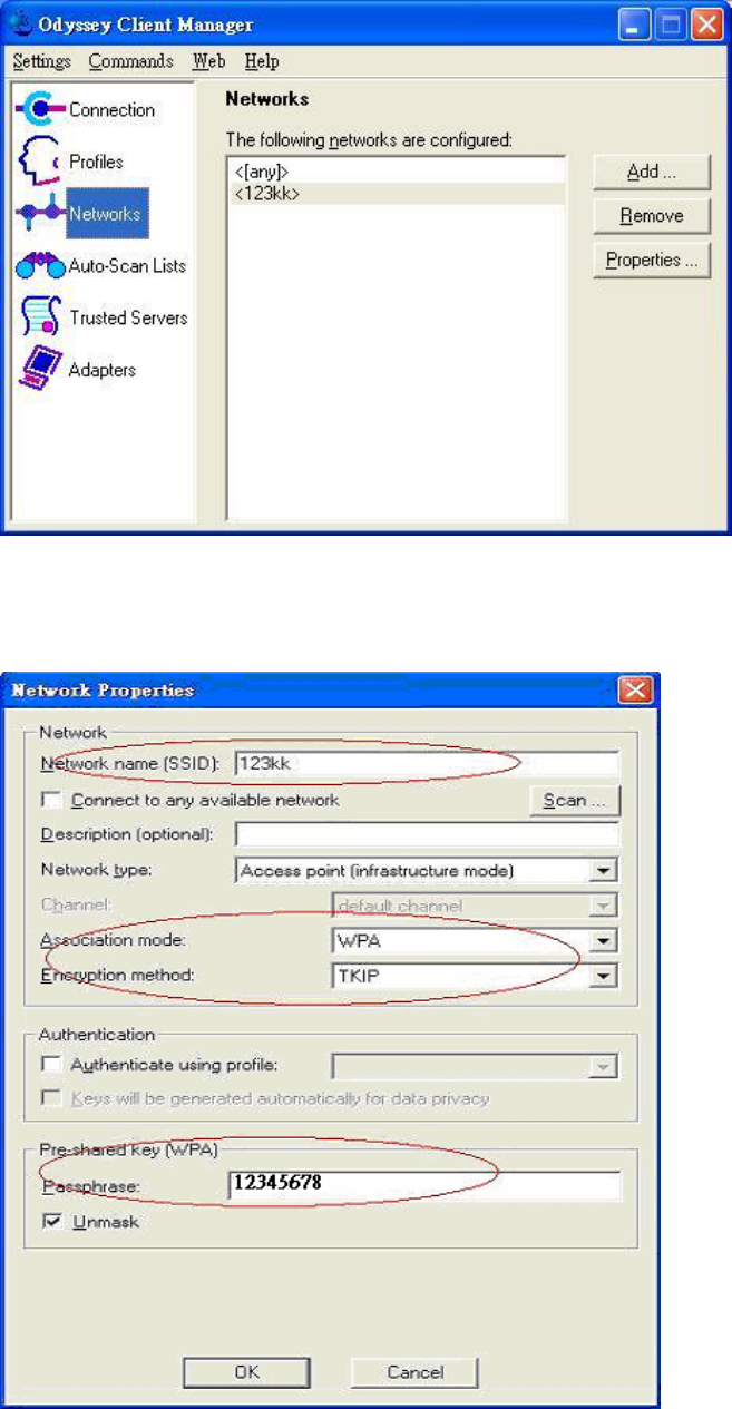 4. Go to Odyssey Client Manager, choose “Profiles” and Setup Profile name as “1”