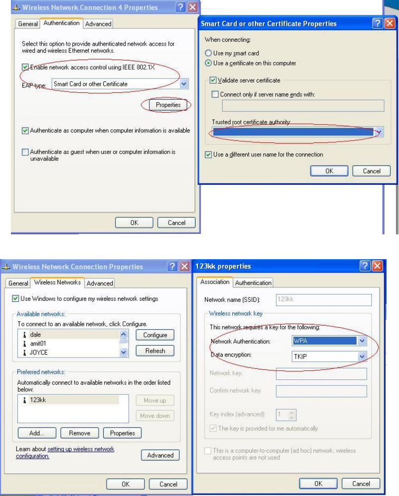 Select “WirelessCA and Enable” in Trusted root certificate authority: